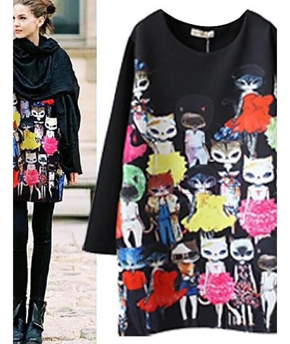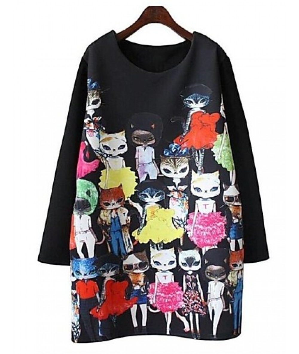Women's Casual/Daily Plus Size Plus Size Dress,Print Above Knee Long Sleeve Black Spring / Fall / Winter