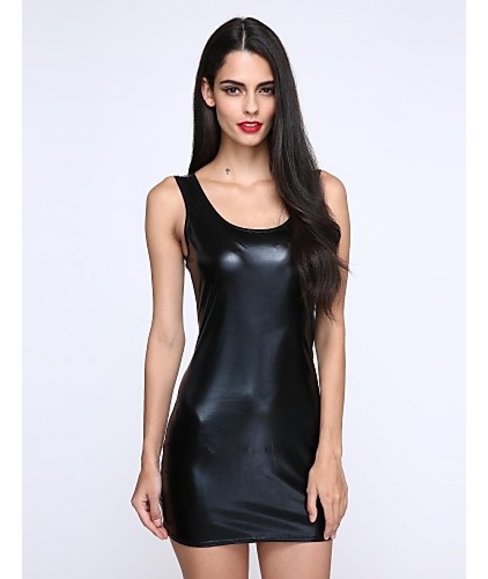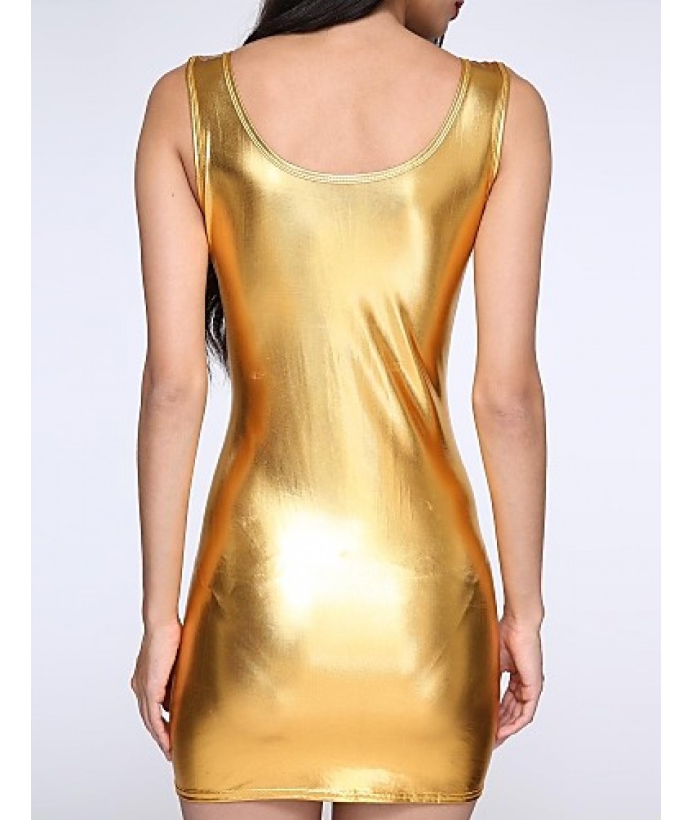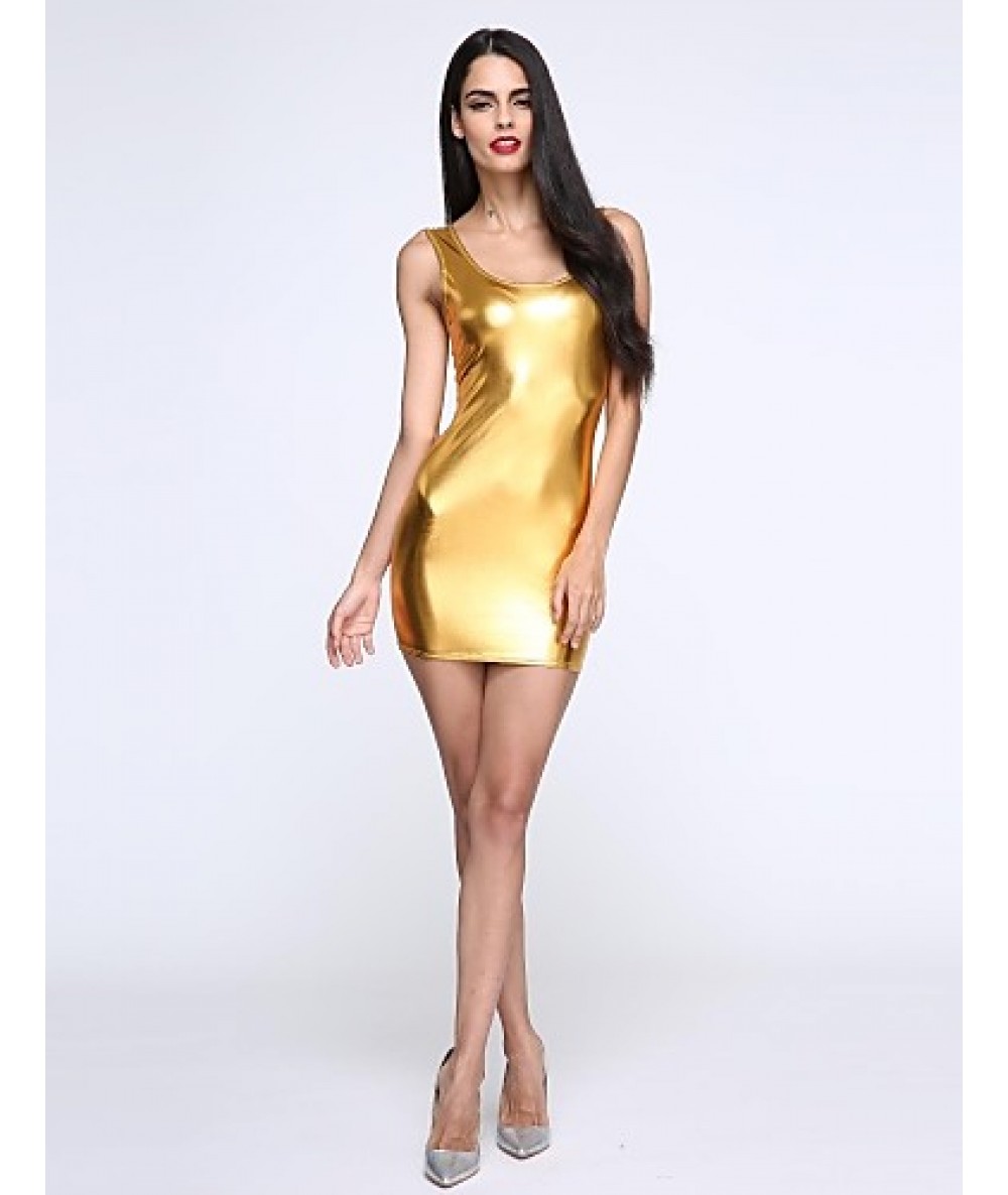 • Product Code: Women's Deep U Mini Dress , PU Black/Gold/Silver Sexy/Bodycon/Ca