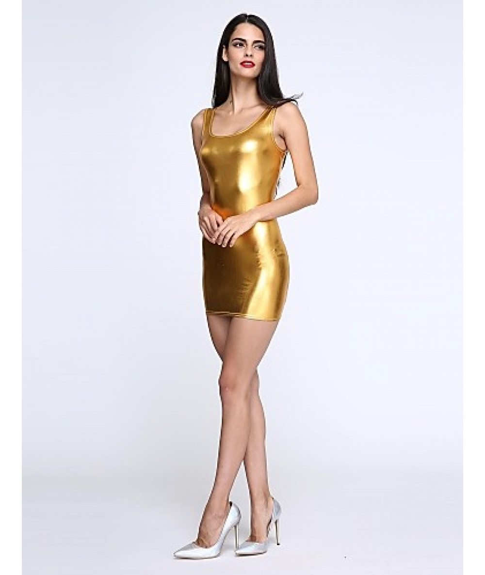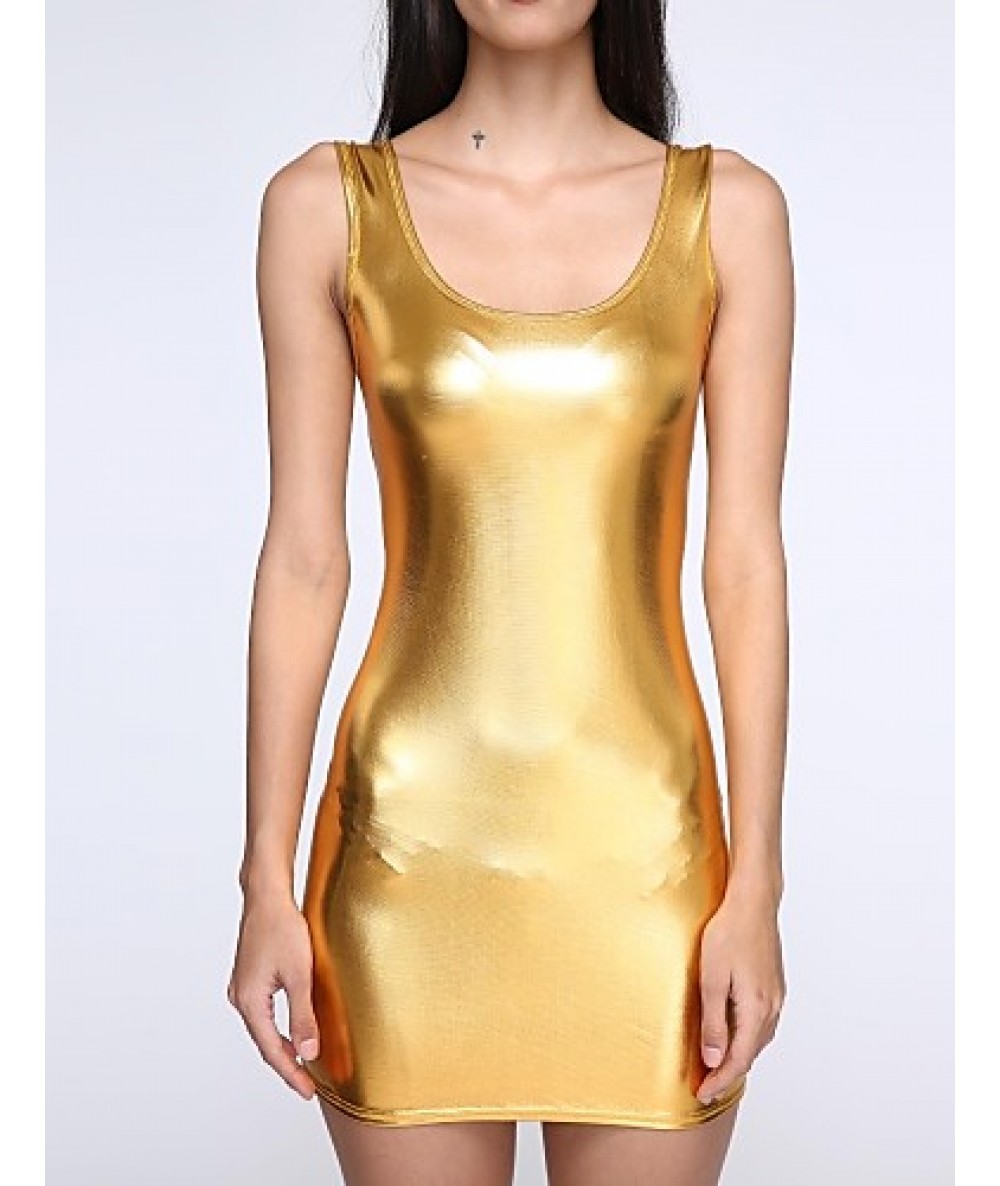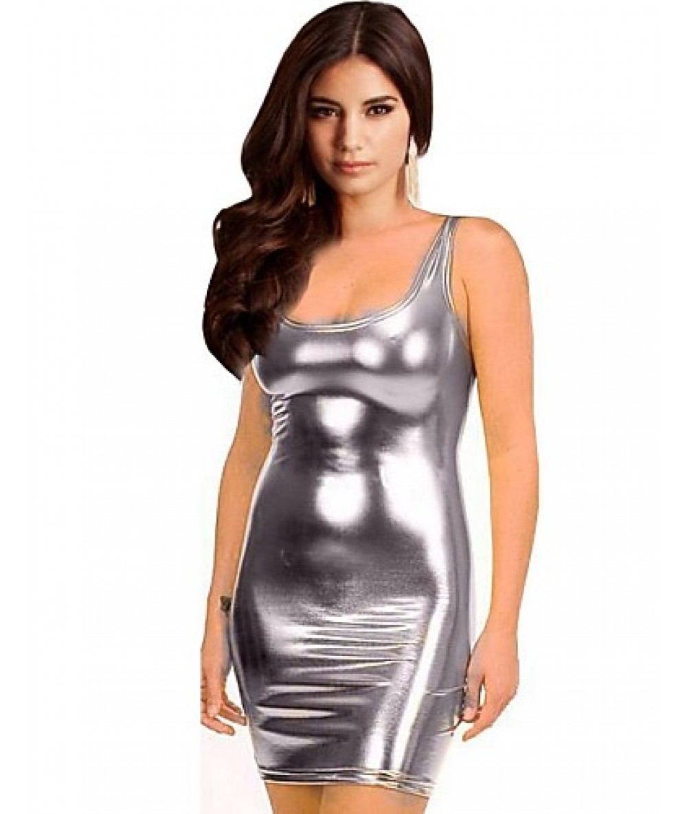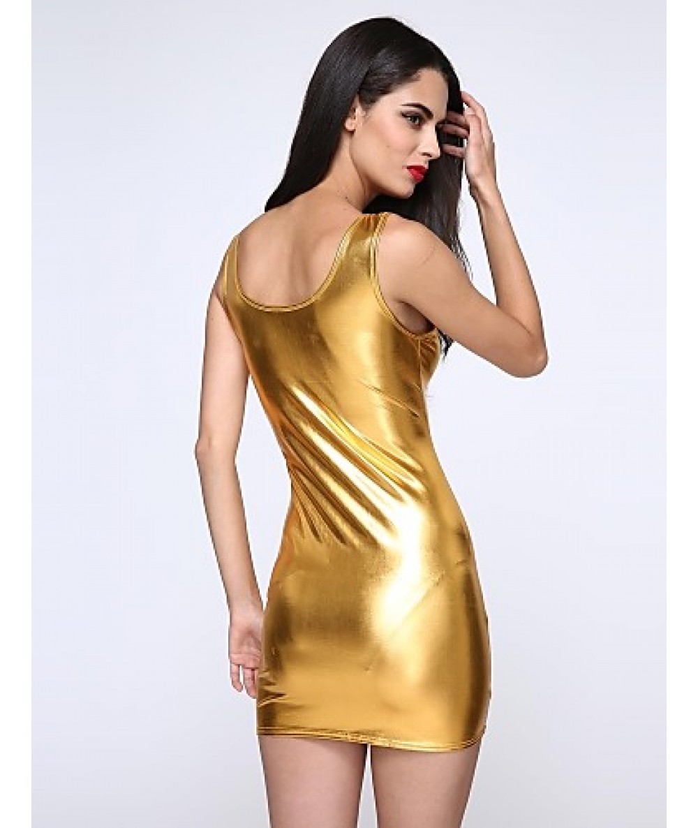 • Product Code: Women's Deep U Mini Dress , PU Black/Gold/Silver Sexy/Bodycon/Ca