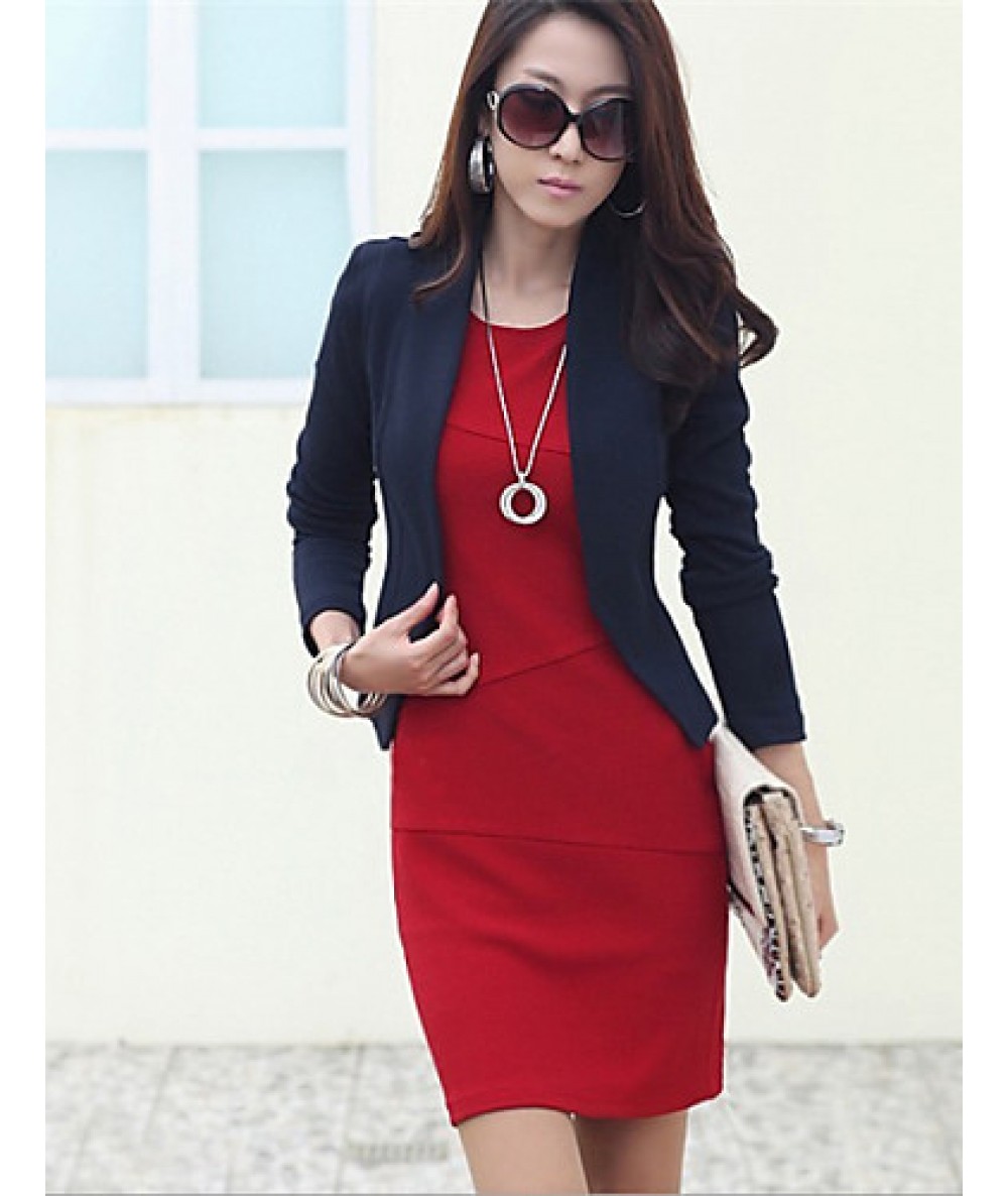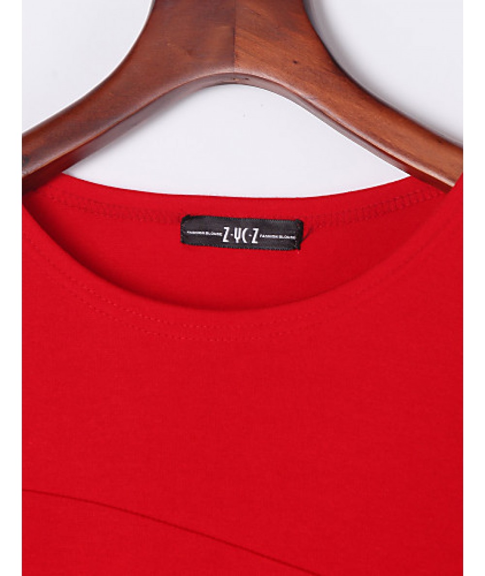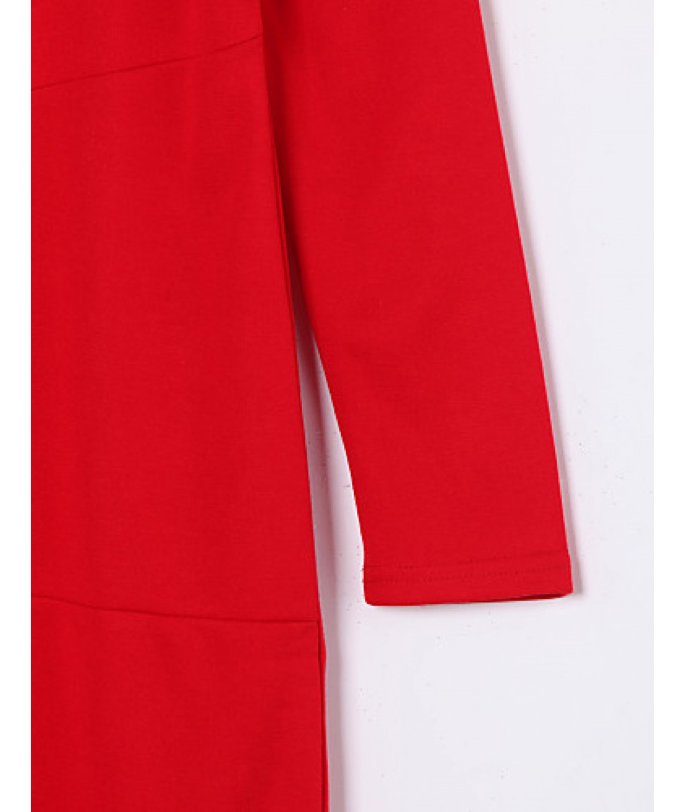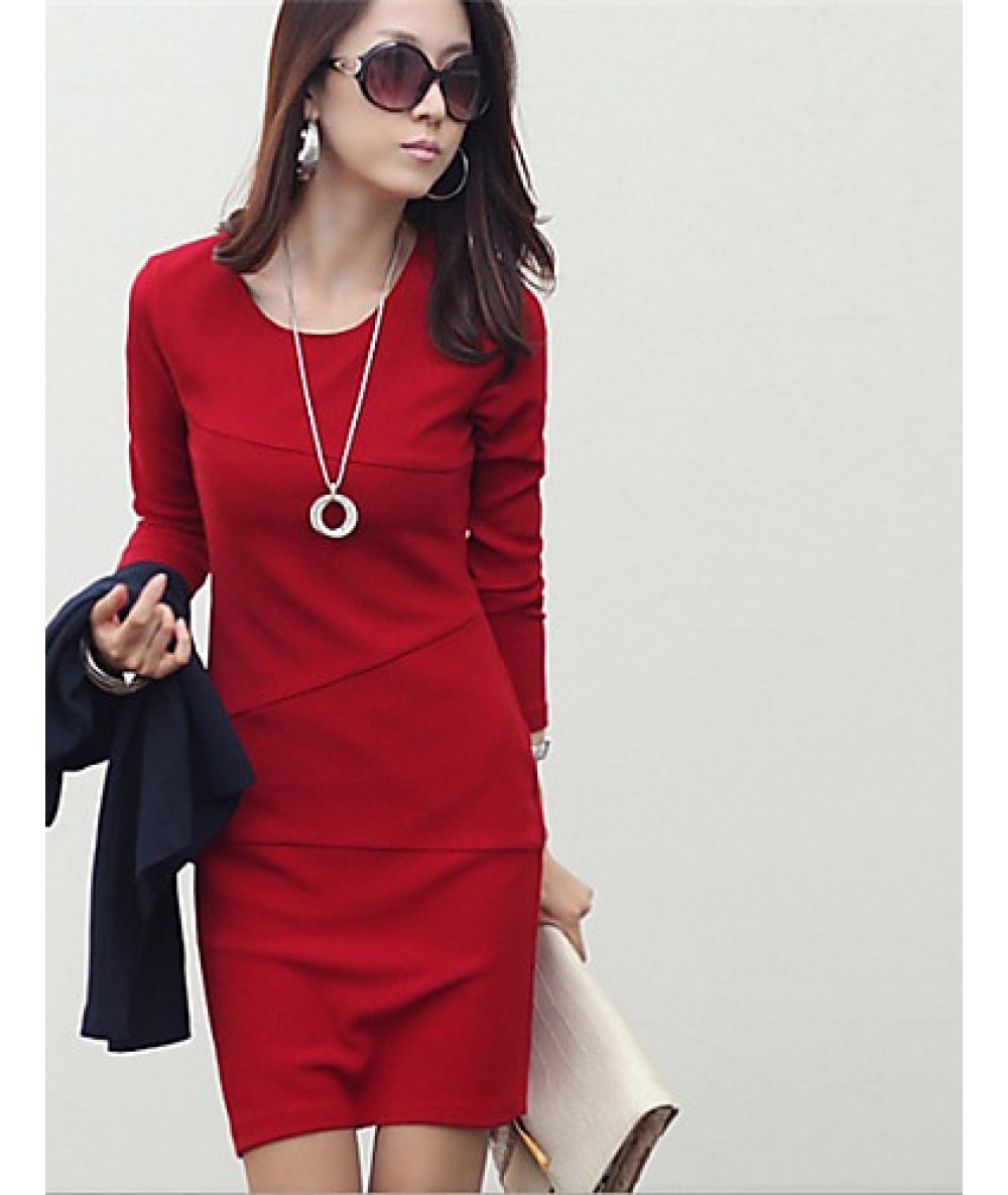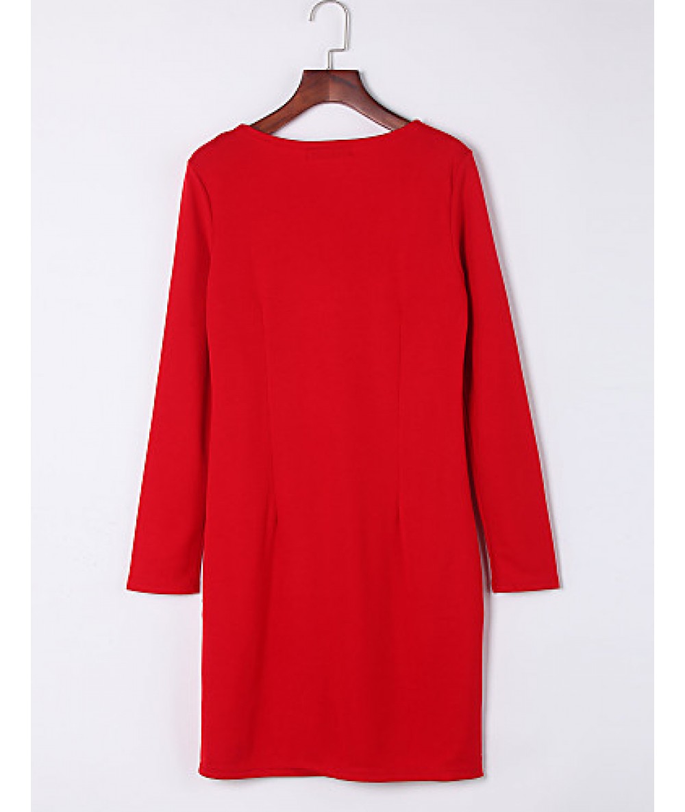 Women's Work / Plus Size Dress,Solid Round Neck Mini Long Sleeve Red / Beige Polyester Summer