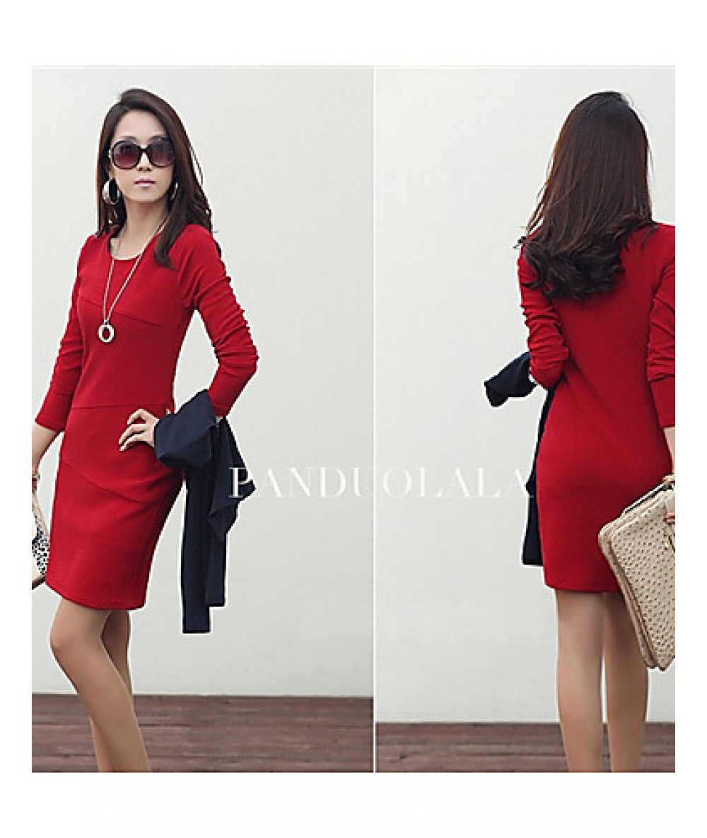 • Product Code: Women's Work / Plus Size Dress,Solid Round Neck Mini Long Sleeve