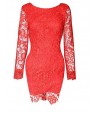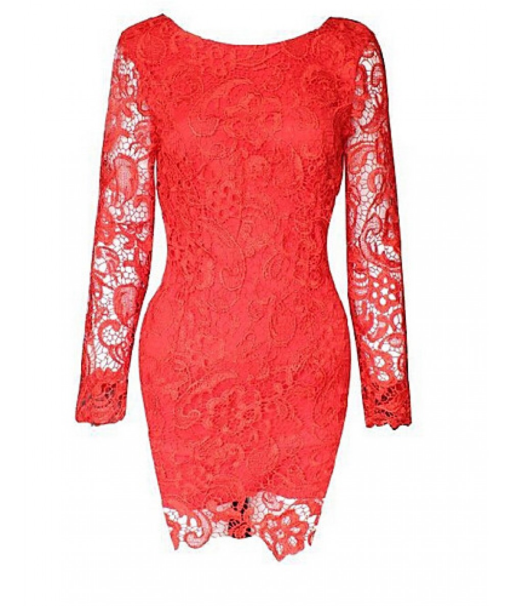 Women's Party/Cocktail / Going out Sexy Lace Dress,Solid Round Neck Mini Long Sleeve Red / Black Cotton / Polyester Summer Mid Rise