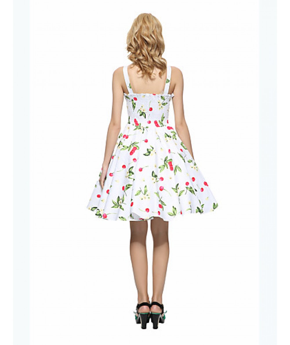Women's Going out Vintage A Line / Skater Dress,Floral Strap Knee-length Sleeveless White / Black Cotton All Seasons