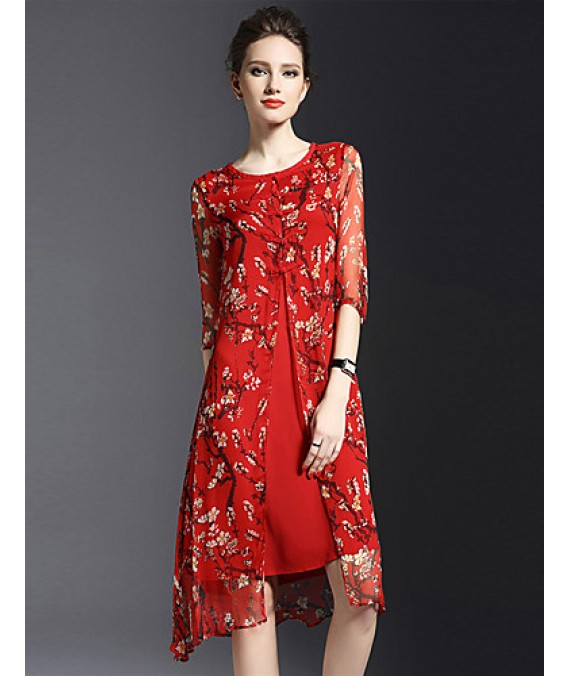 Women's Vintage / Simple Print Plus Size / Sheath Dress,Round Neck Knee-length