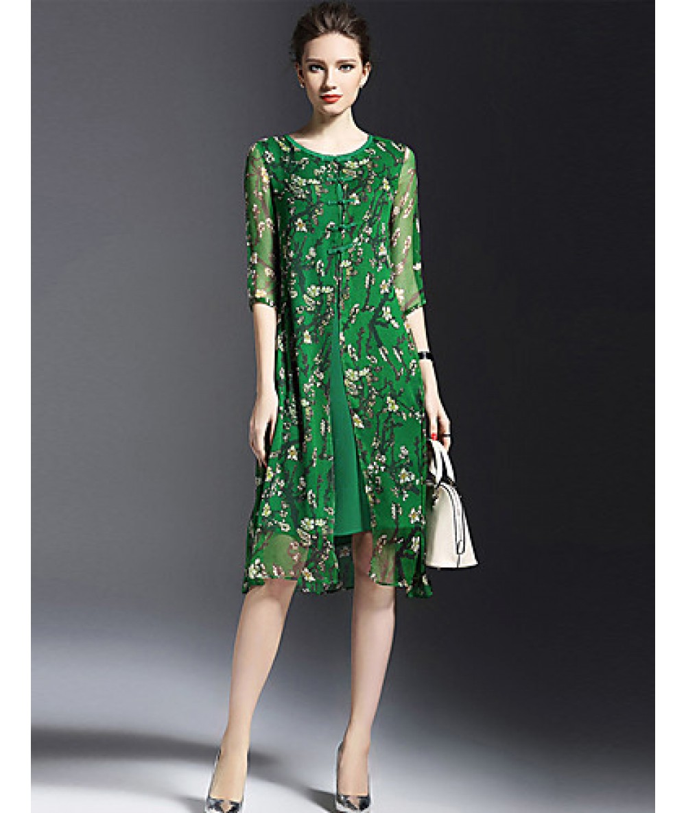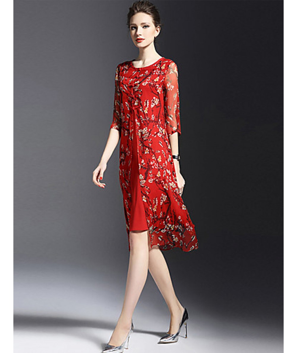 • Product Code: Women's Vintage / Simple Print Plus Size / Sheath Dress,Round Ne