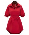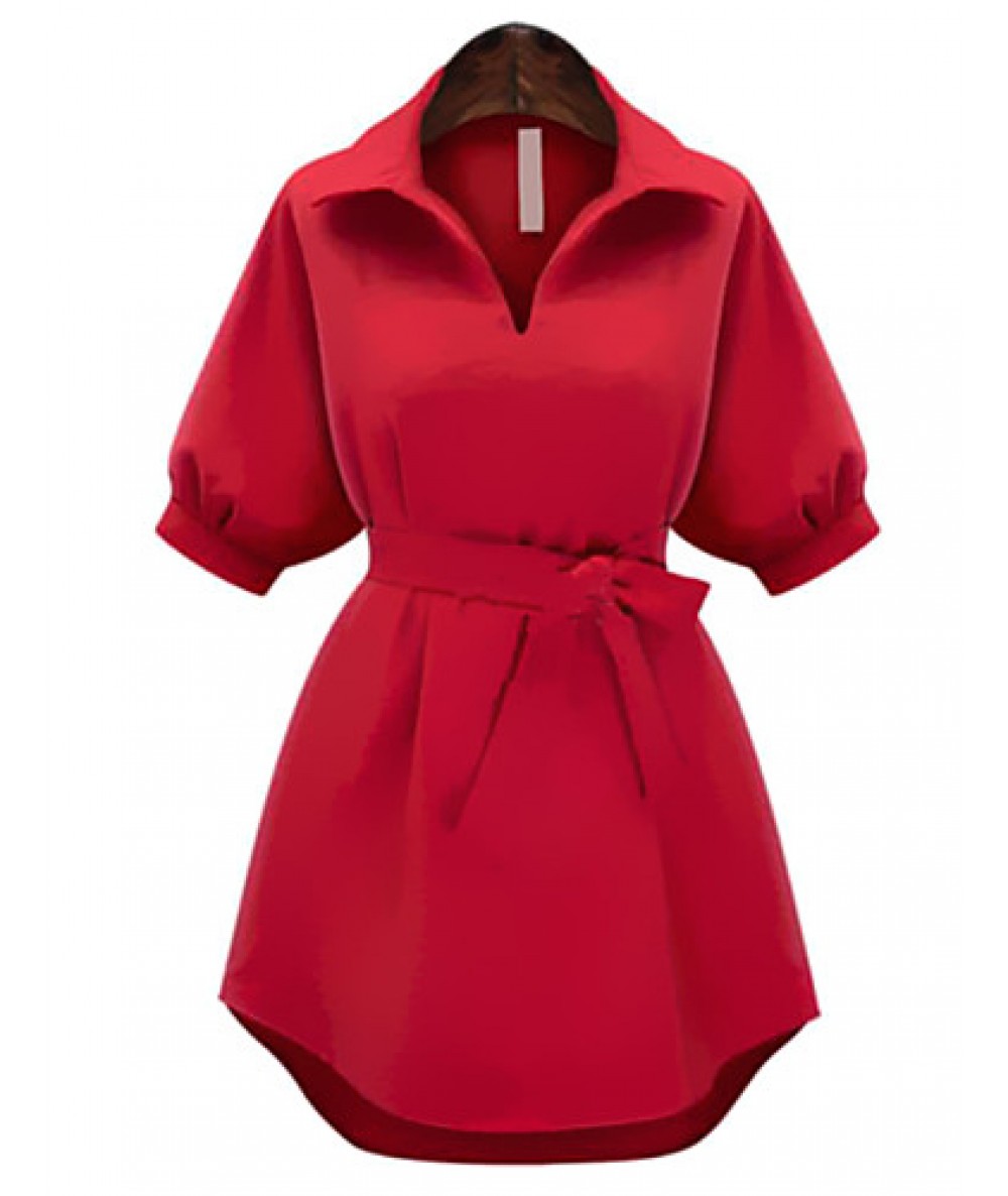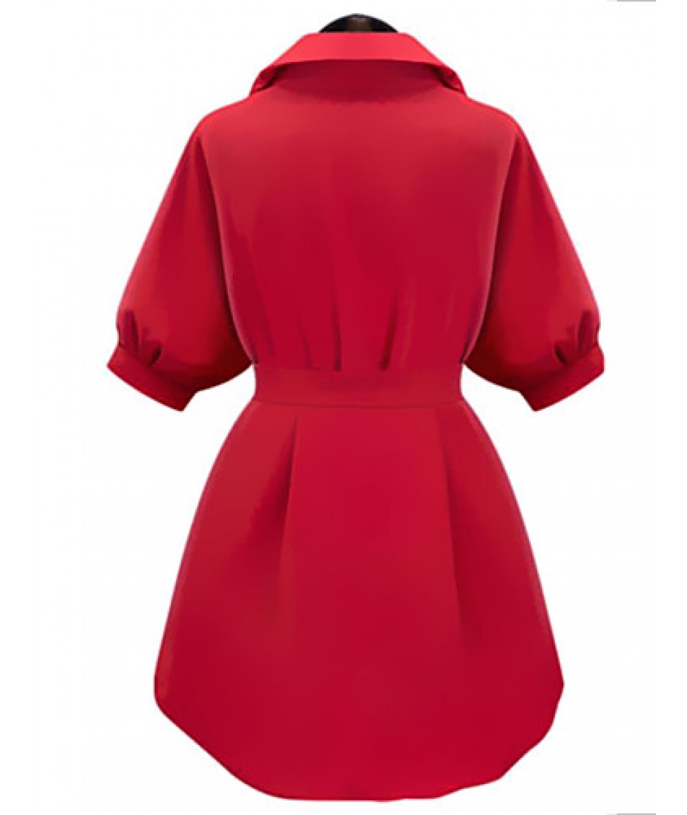 Women's Plus Size Simple Sheath Dress,Solid Shirt Collar Above Knee ? Length Sleeve Red / Black Polyester Summer