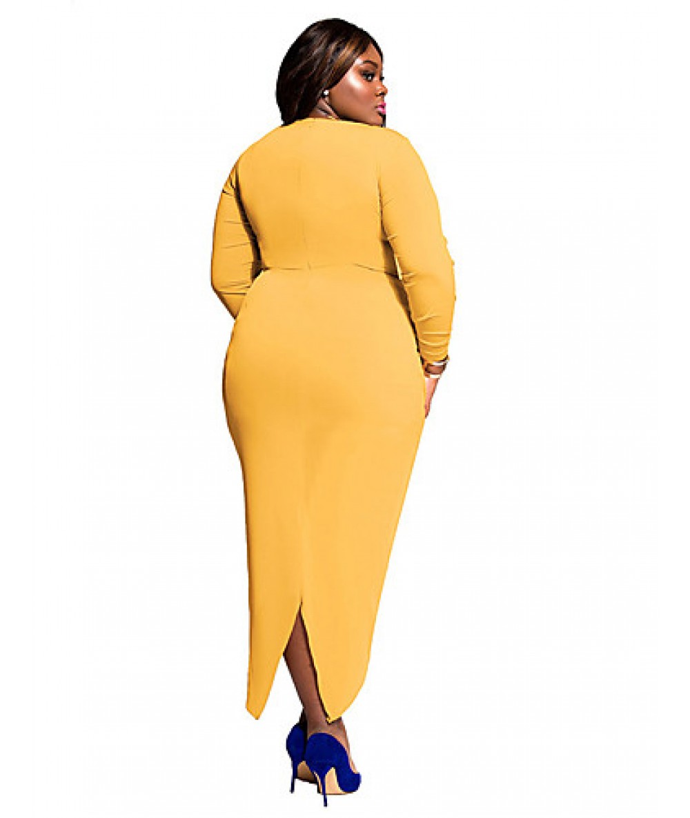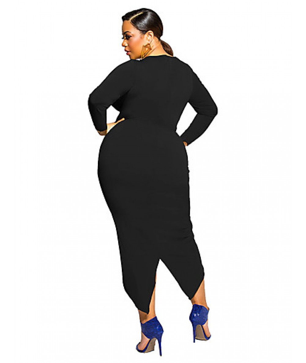 Women's Plus Size / Formal / Party/Cocktail Sexy / Street chic Sheath Dress,Solid Crew Neck Asymmetrical Long Sleeve