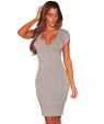 Women's Plunge V Neck Ribbed Bodycon Dress