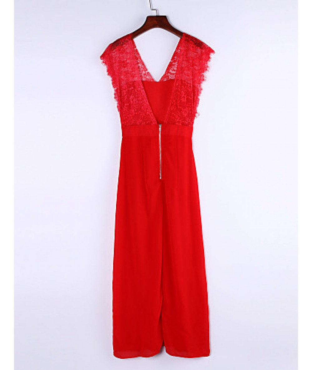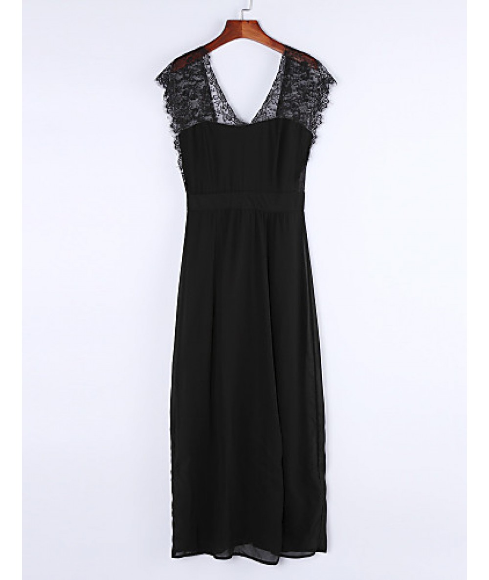 Women's Sexy / Club / Casual / Day Solid Sheath / Lace / Little Black Dress , Deep V Midi Polyester
