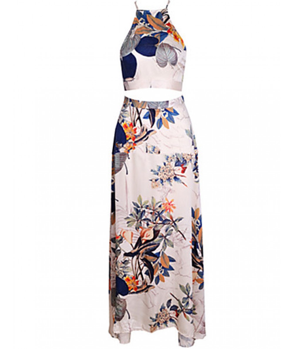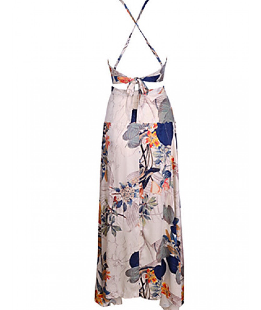 Women's Vintage Sexy Beach Print Cute Plus Sizes Micro Elastic Sleeveless Maxi Dress (Microfiber)