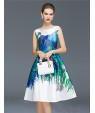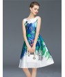 Women's Party/Cocktail Vintage / Boho Sheath / Skater Dress,Print Round Neck Knee-length Sleeveless Blue Polyester All Seasons