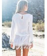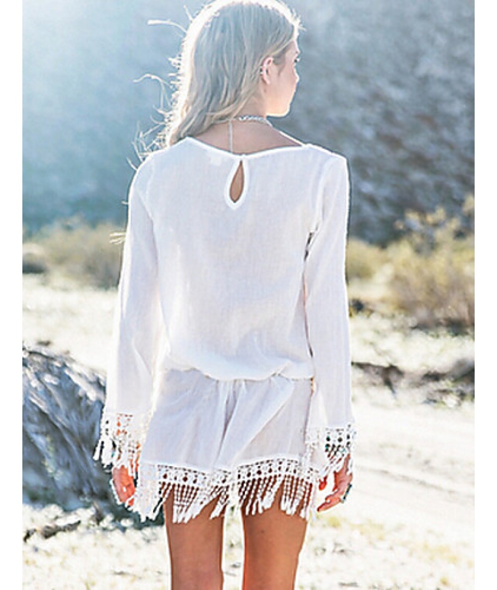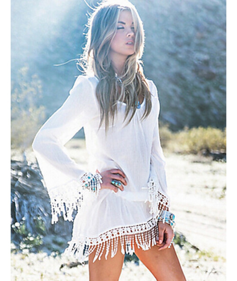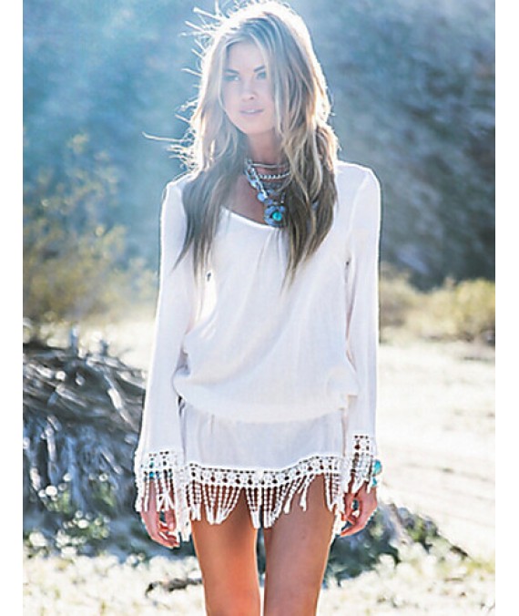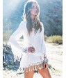 Women's CasualPure White Long Sleeve Beach Mini Dress with Tassels