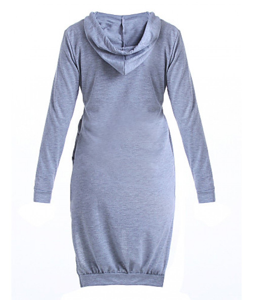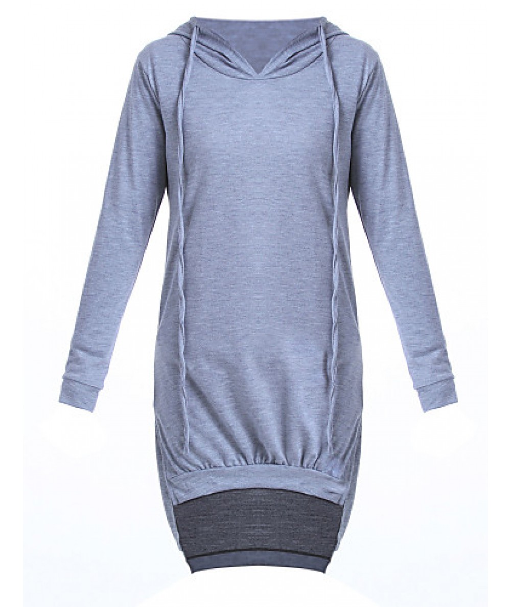 Women's Casual/Daily / Plus Size Dress,Solid Round Neck / Hooded Above Knee Long Sleeve Blue / Black / Gray Polyester Fall Micro-elastic