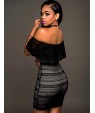Women's Going out Street chic Lace Sexy Sheath Dress, Boat Neck Mini Short Sleeve Black