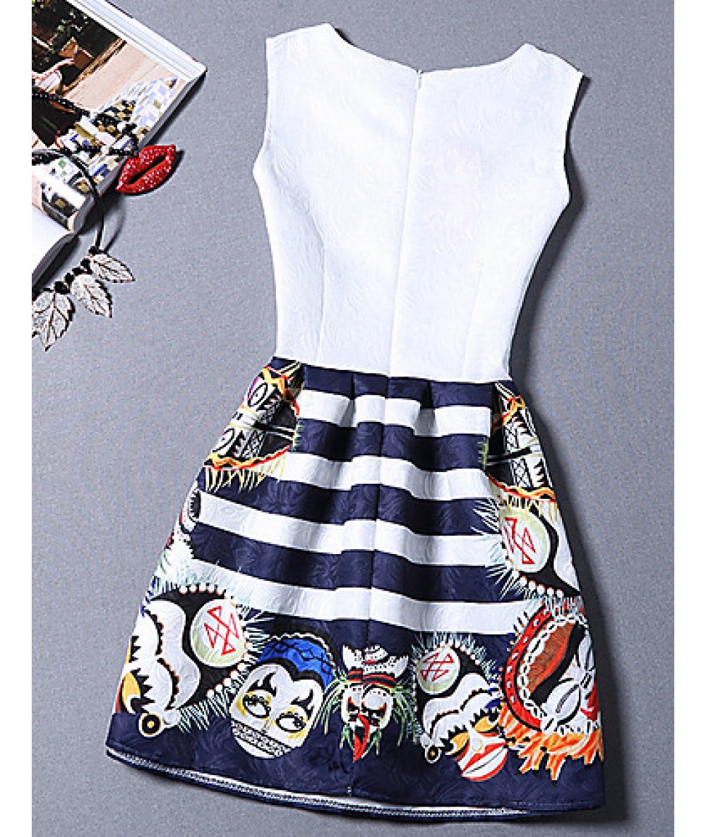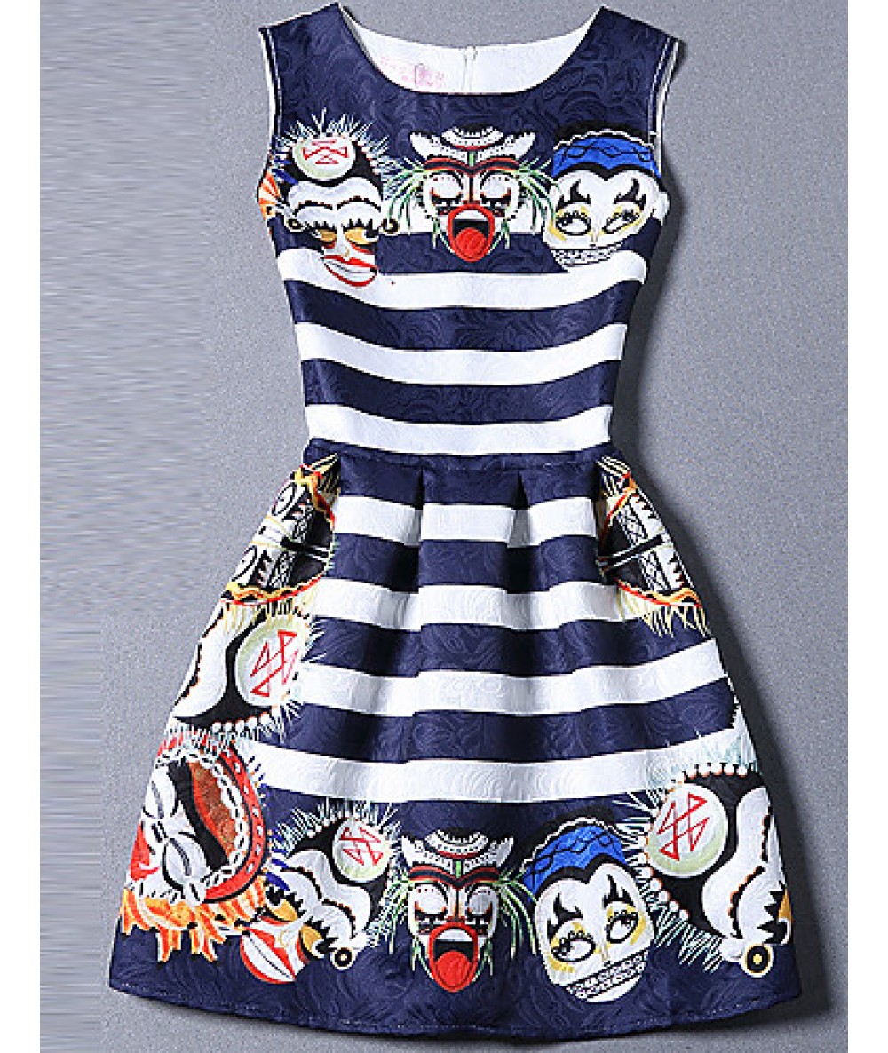 • Product Code: Women's Cute Print A Line Dress,Round Neck Mini Polyester