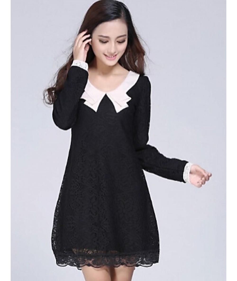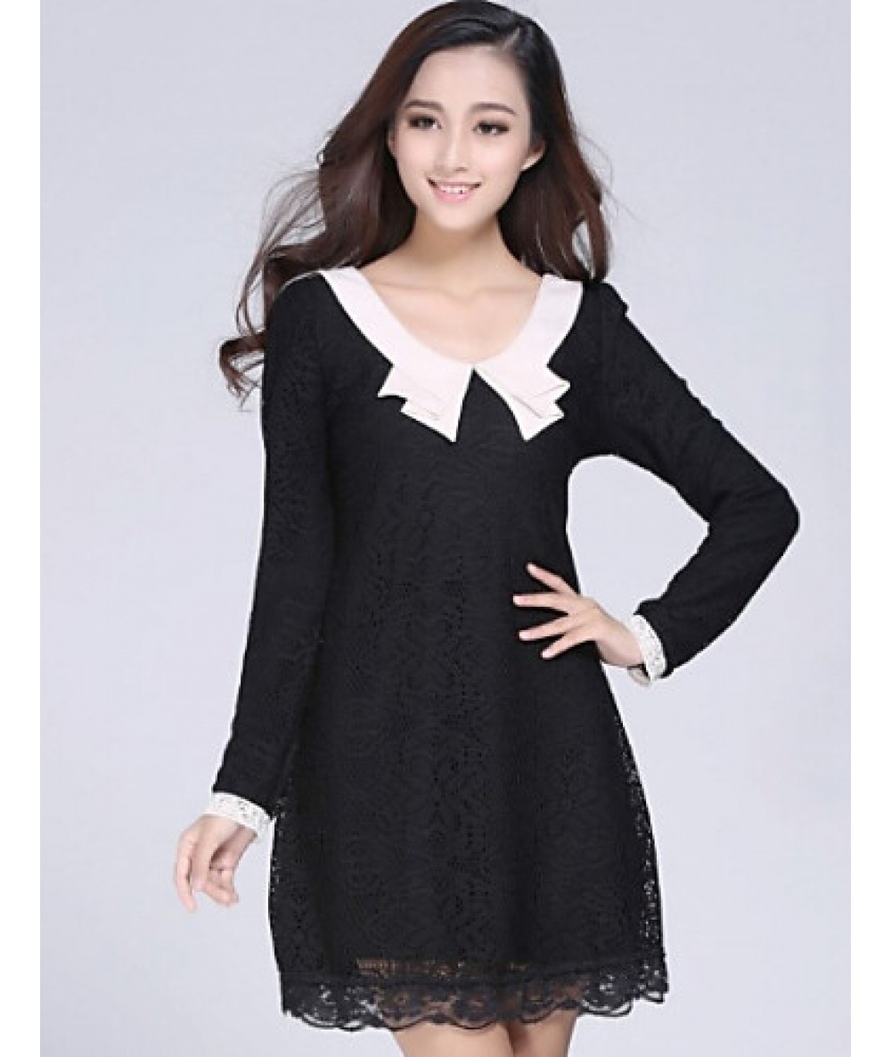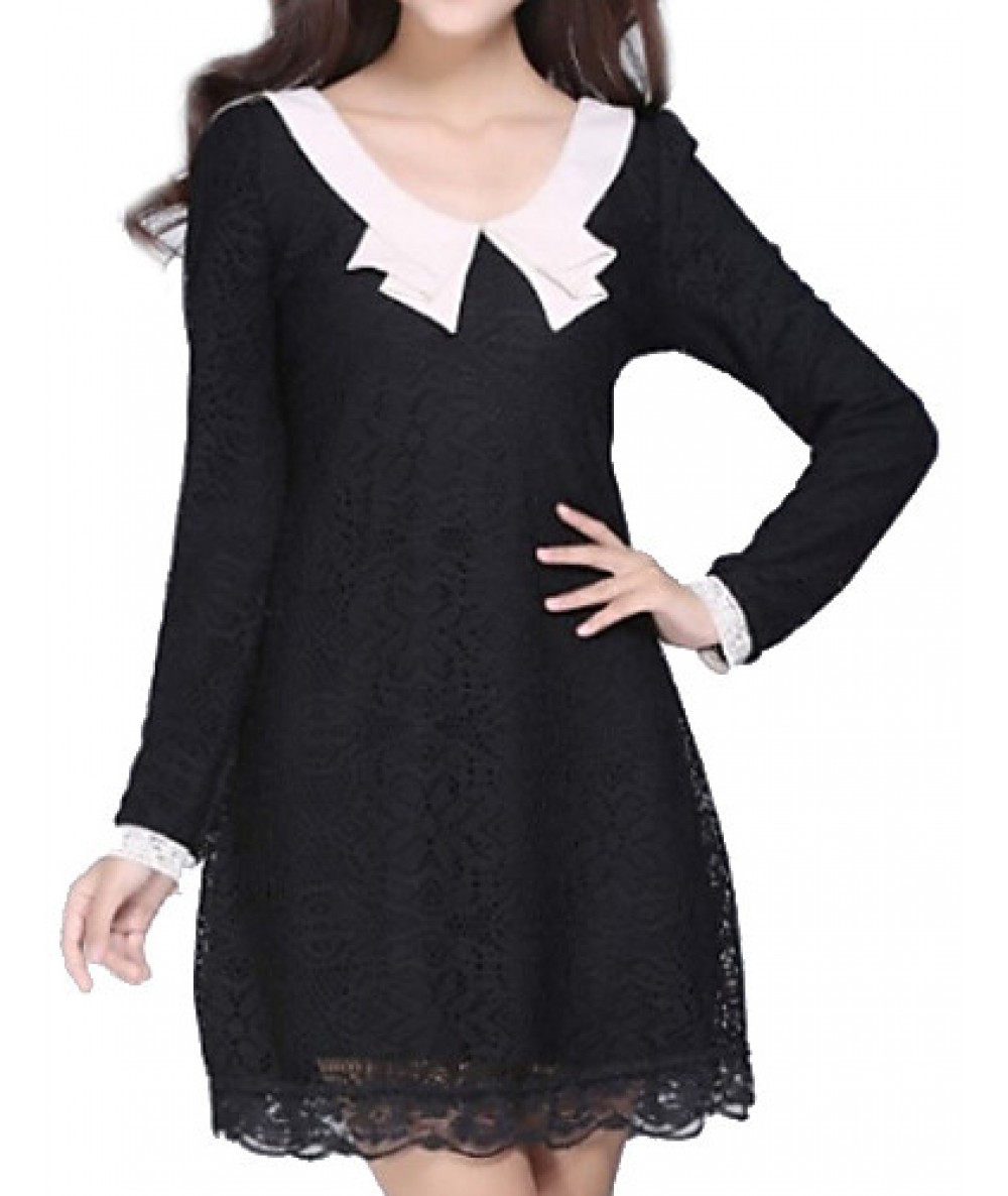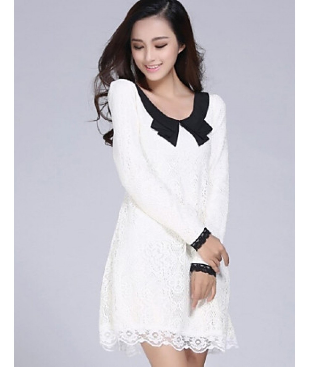 • Product Code: Women's Solid White / Black Dress , Casual Round Neck Long Sleev