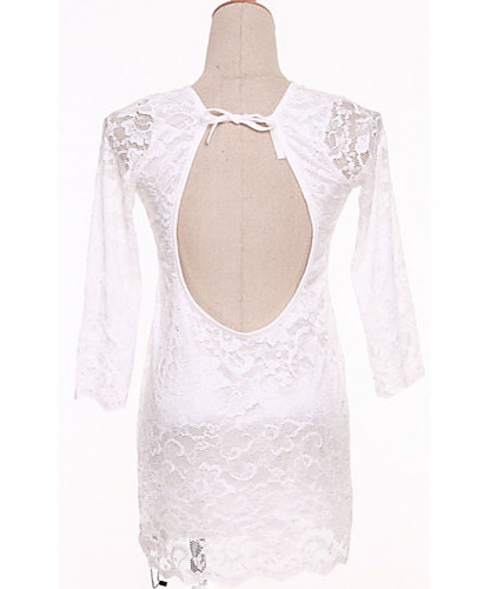 Women's Club Bodycon Dress,Solid Round Neck Knee-length ? Length Sleeve White / Black Summer