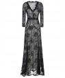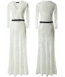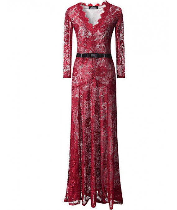 Women's Sexy V Neck Long Sleeve Lace Maxi Dress