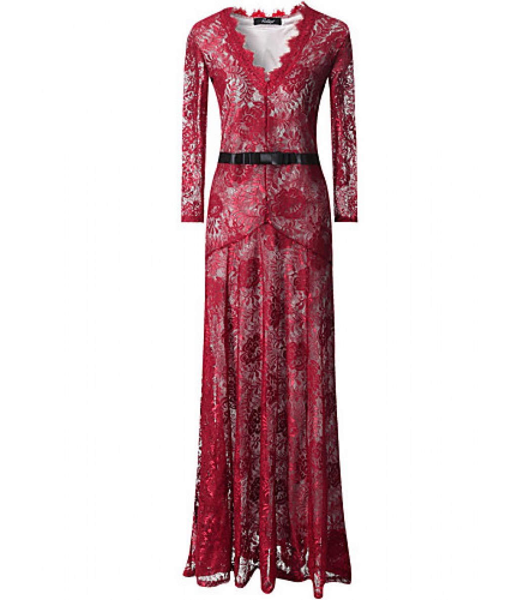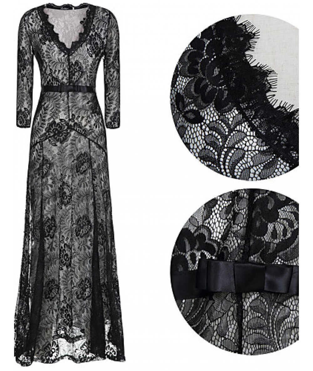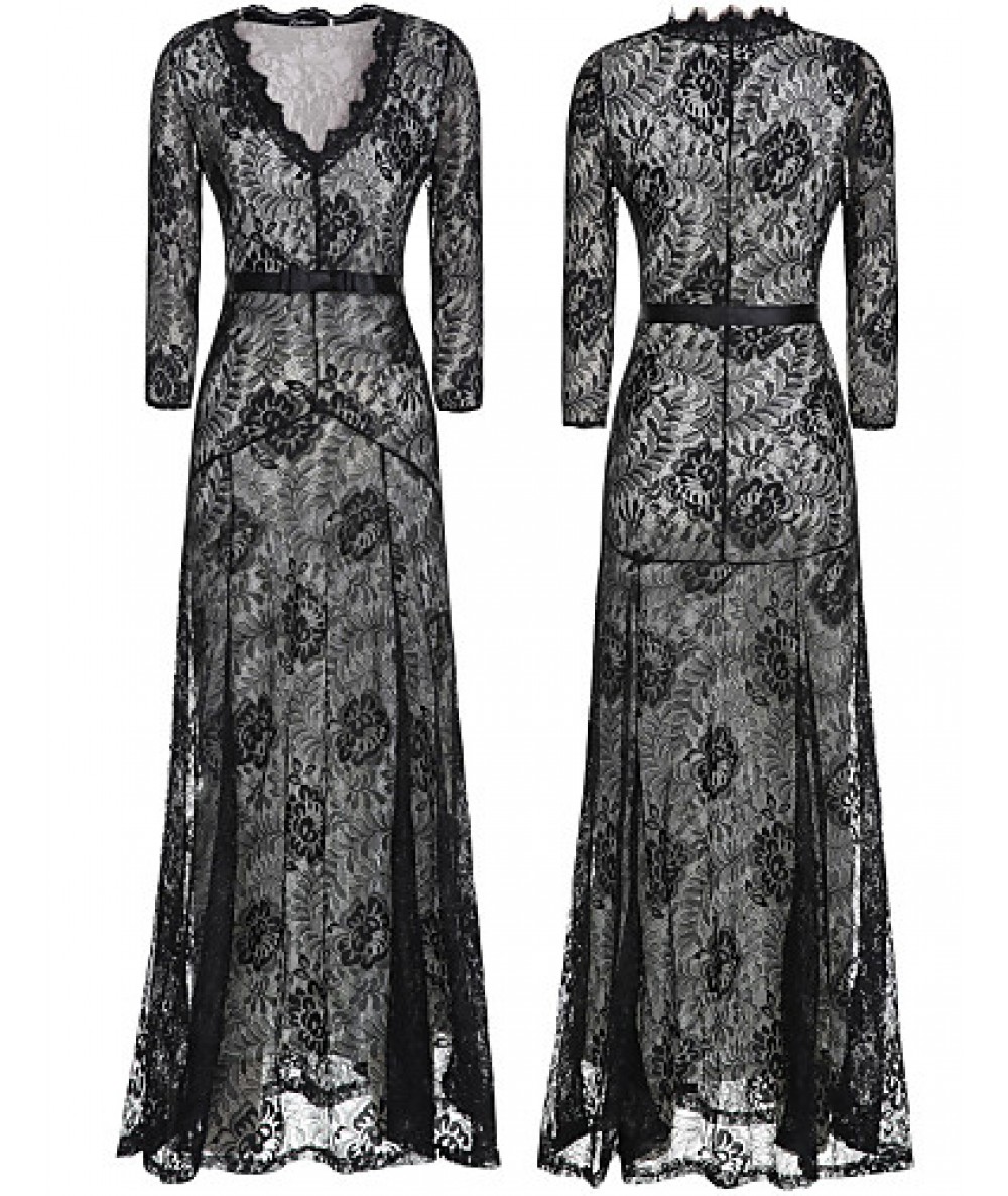 • Product Code: Women's Sexy V Neck Long Sleeve Lace Maxi Dress