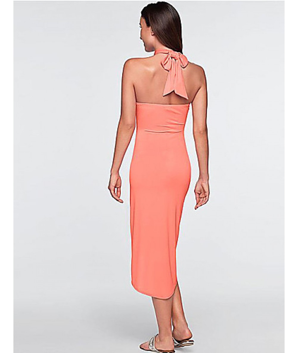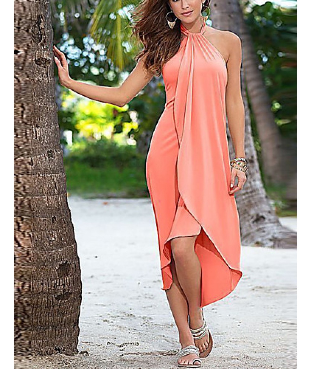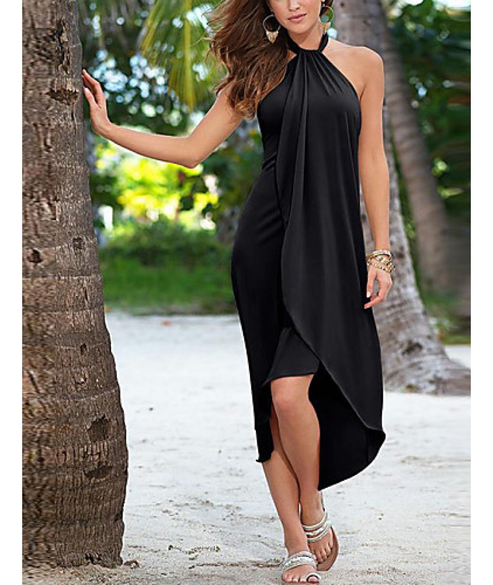 Women's Beach Simple Loose Dress,Solid Halter Asymmetrical Sleeveless Pink / Red / Black / Green / Purple Polyester Summer
