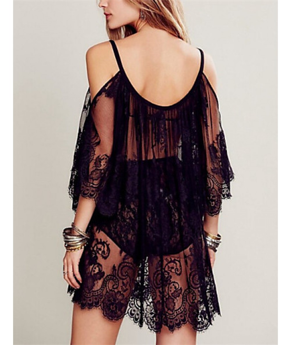 Women's Club Loose Dress,Solid Round Neck Above Knee ? Sleeve White / Black Summer