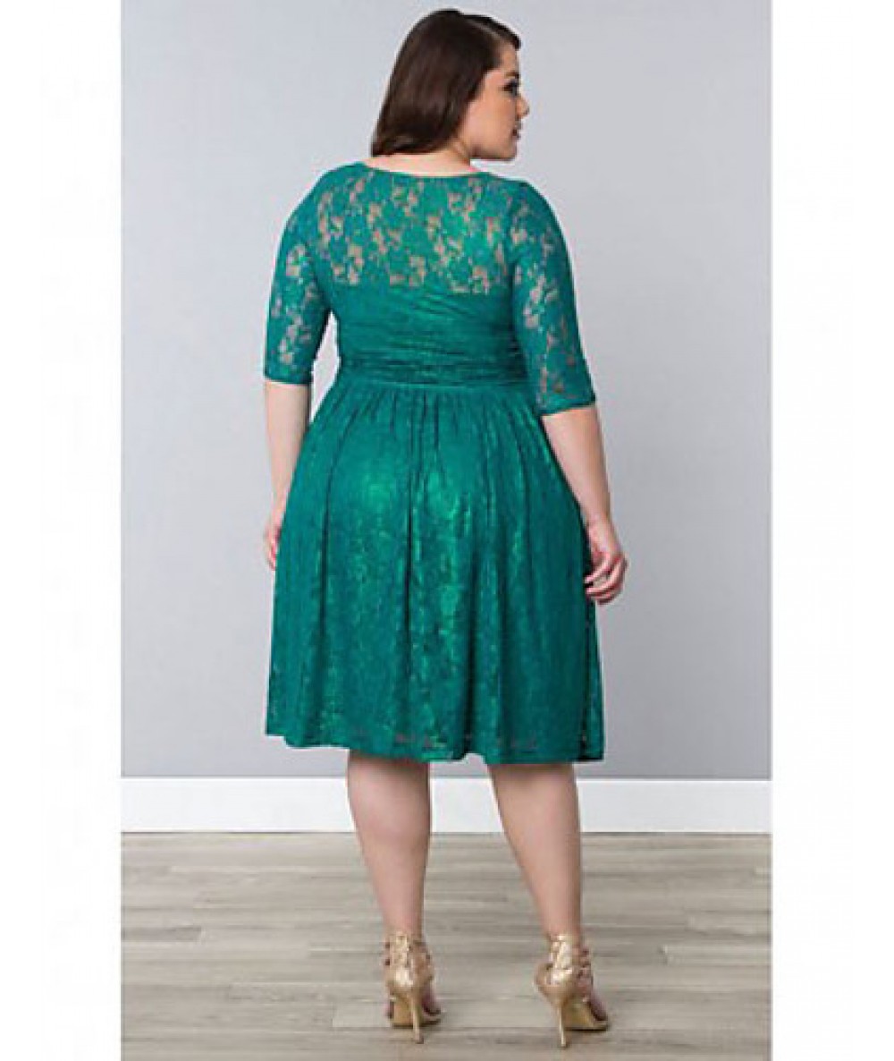 Women's Party/Cocktail Vintage Plus Size Dress Round Neck Knee-length ? Length Sleeve Green Spandex Fall