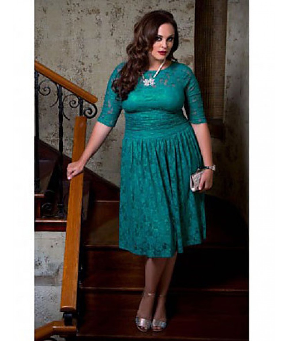 • Product Code: Women's Party/Cocktail Vintage Plus Size Dress Round Neck Knee-l