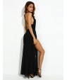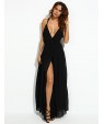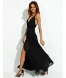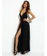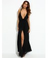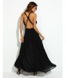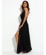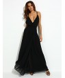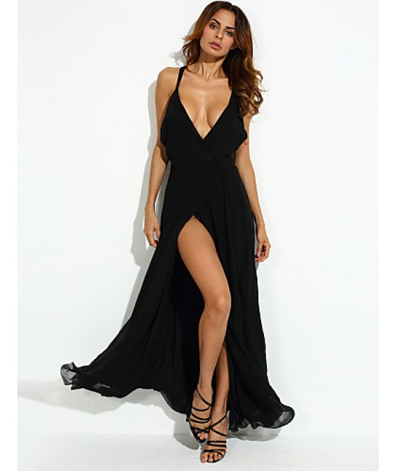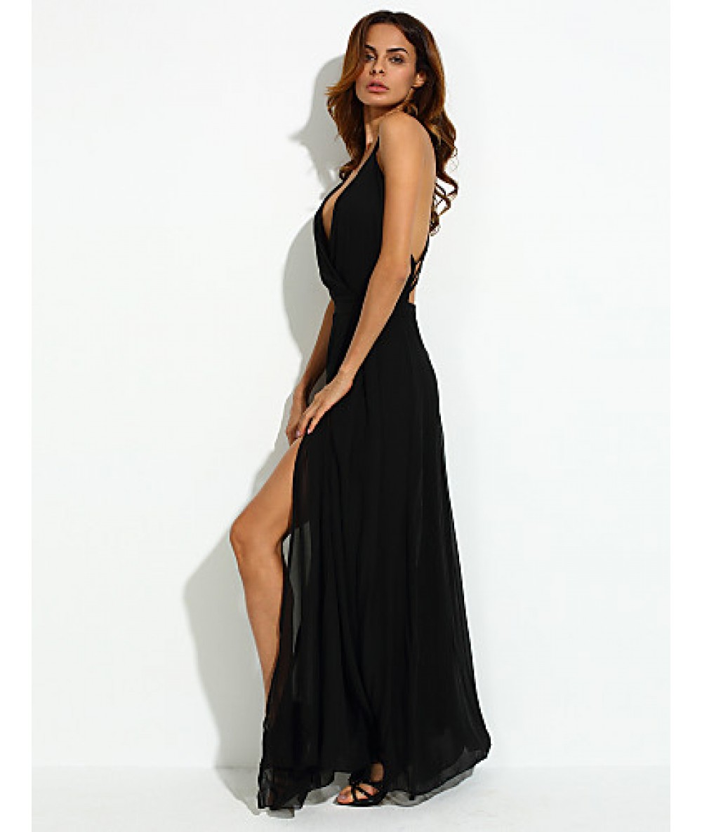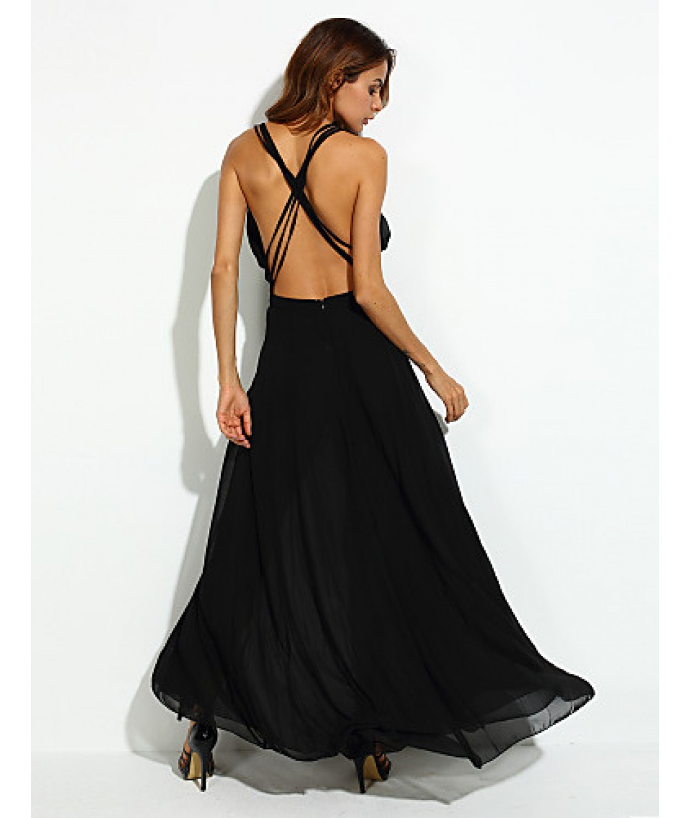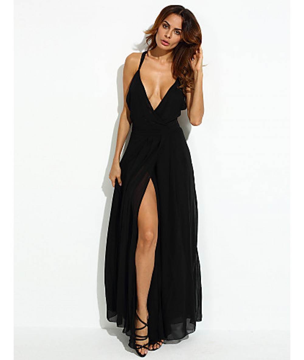 Women's Party/Cocktail Sexy Loose Dress,Solid V Neck Maxi Sleeveless Black Polyester Summer