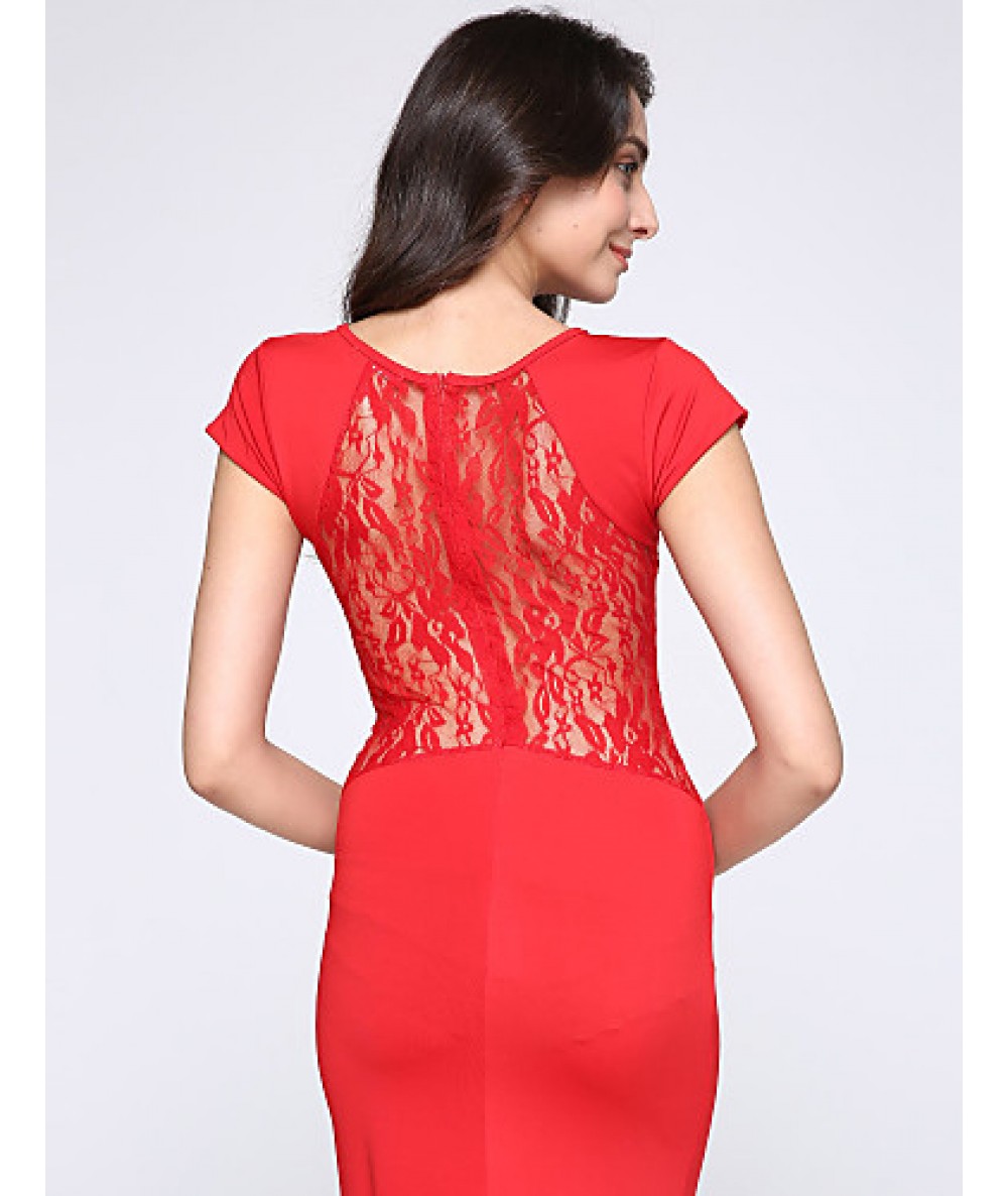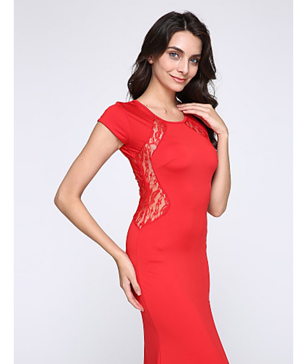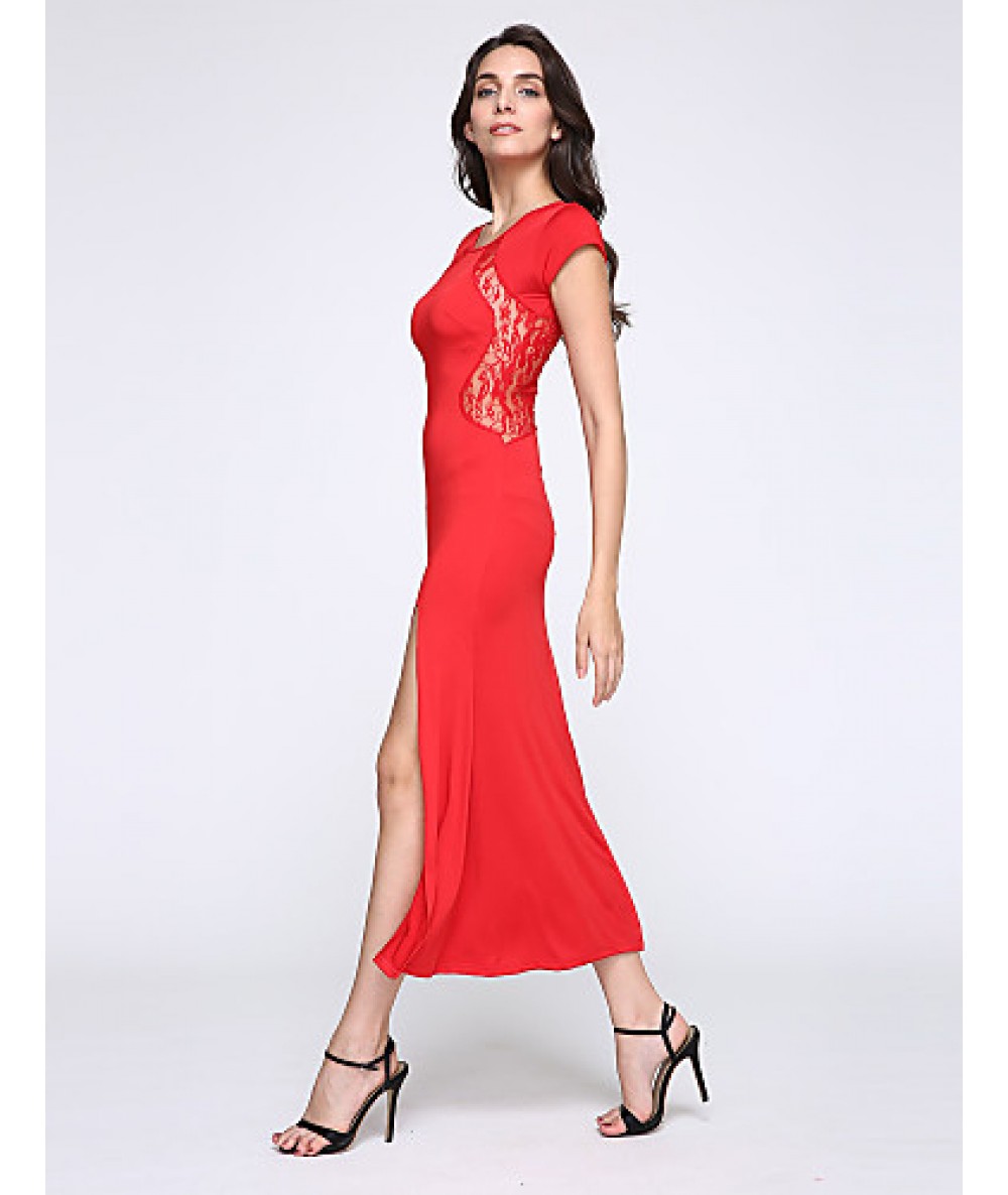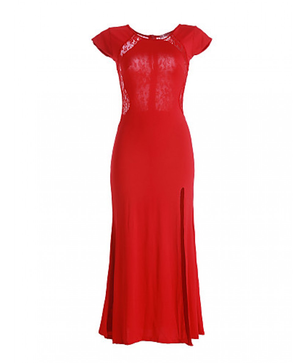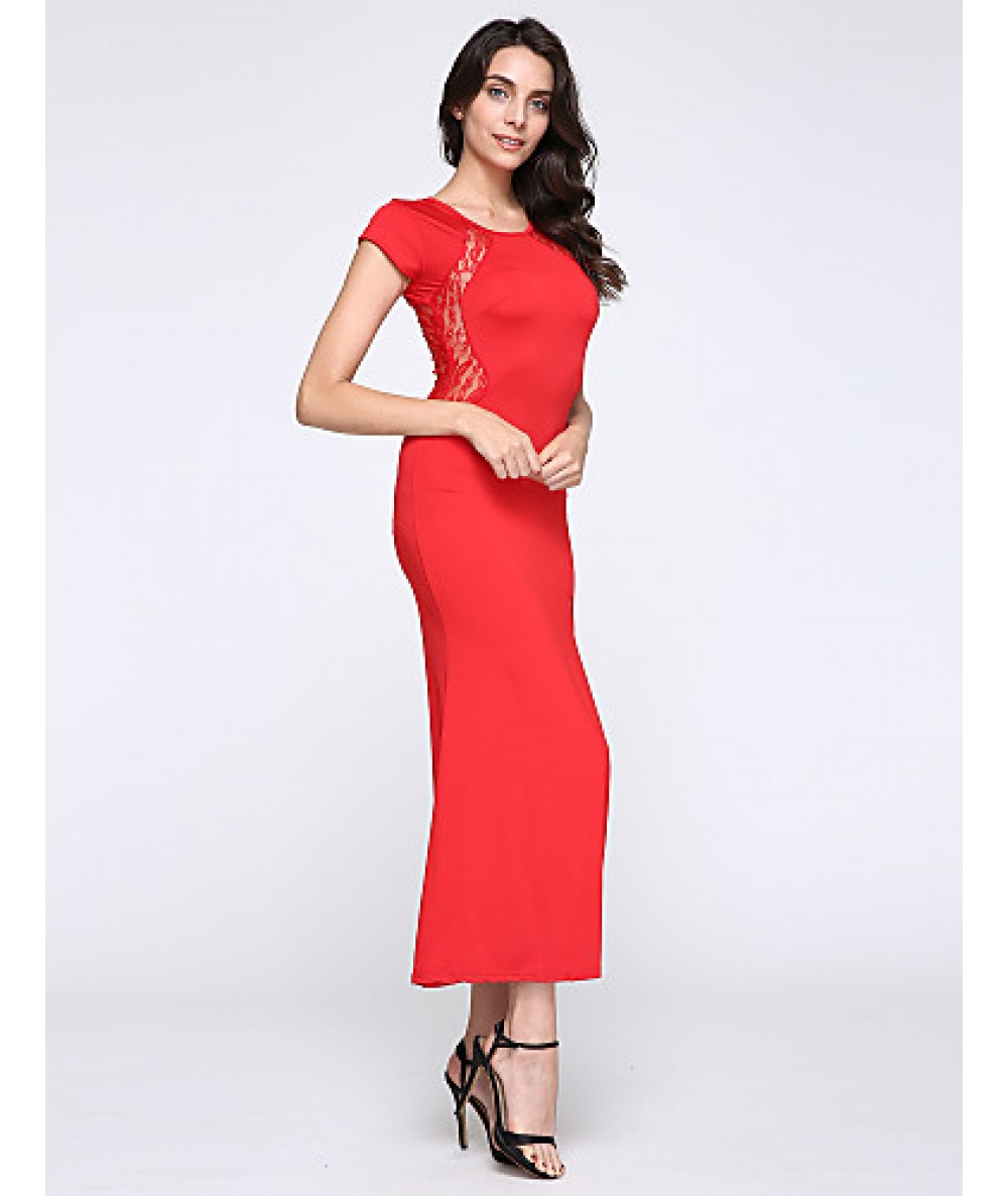 Women's Round Neck Dress , Lace Maxi Short Sleeve