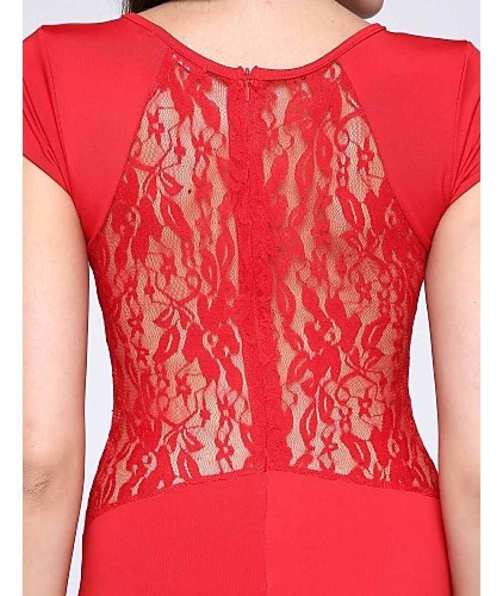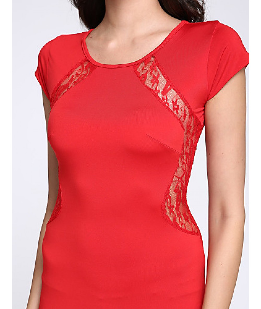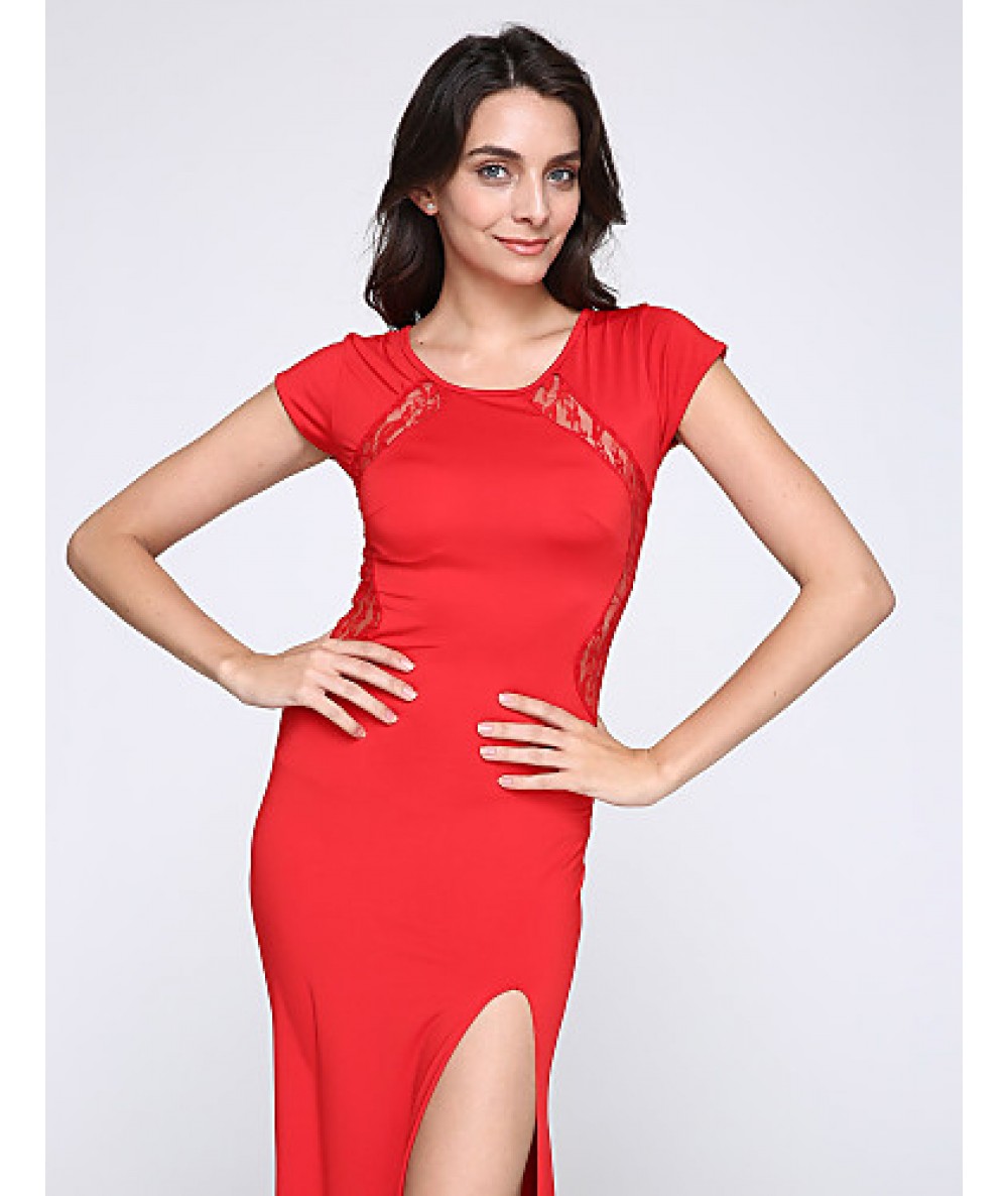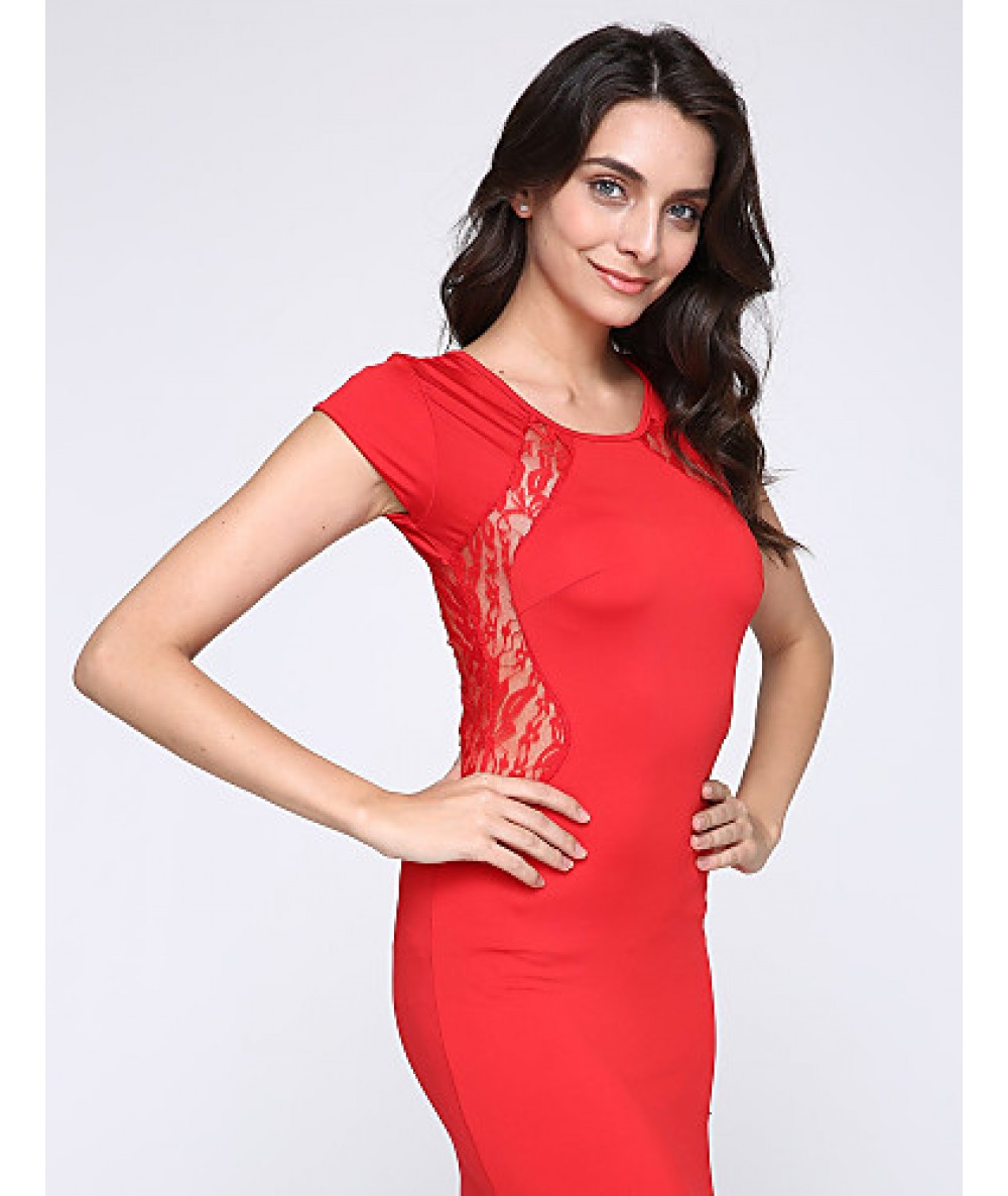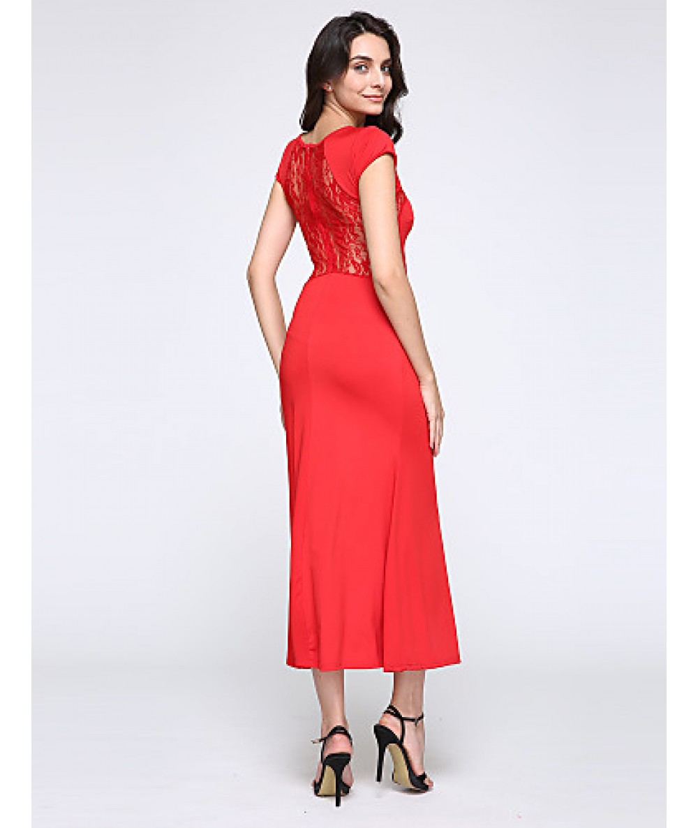 Women's Round Neck Dress , Lace Maxi Short Sleeve
