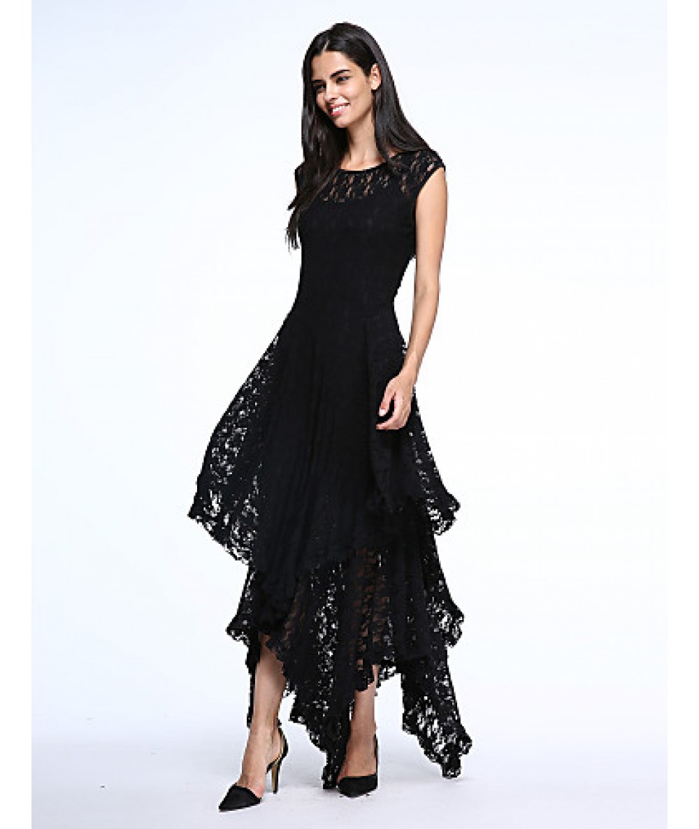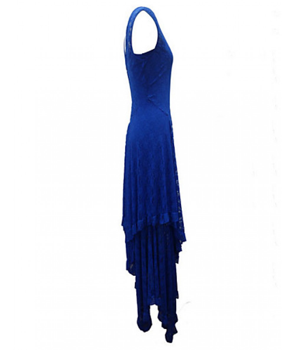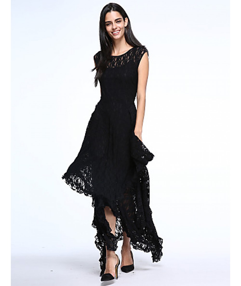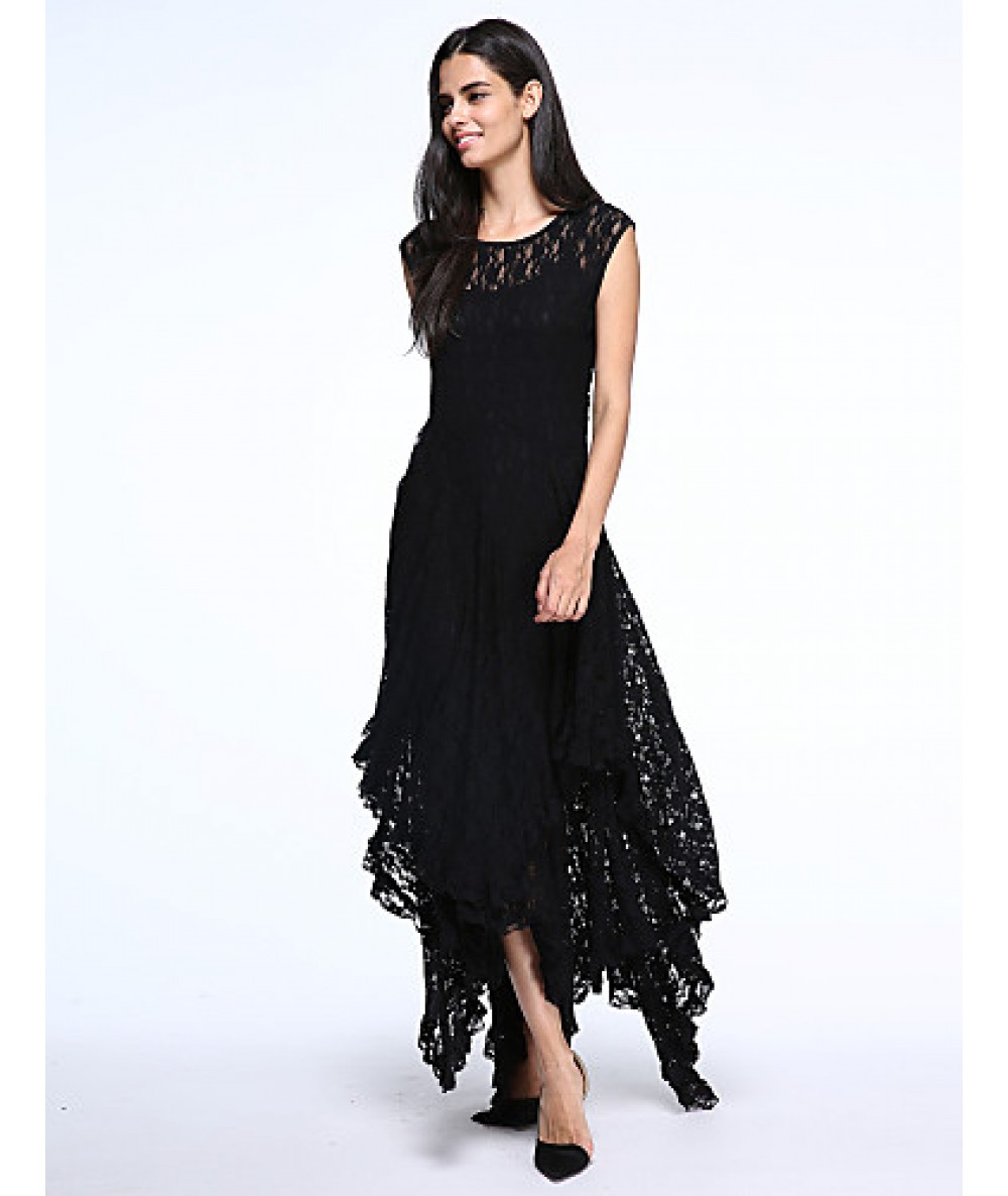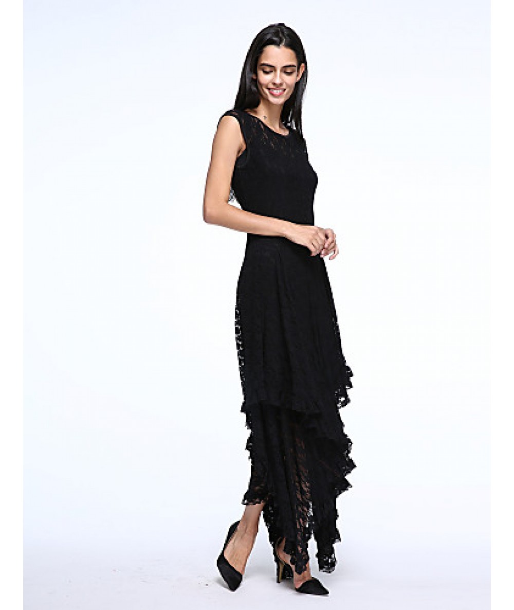 Women's Beach Lace / Skater Dress,Solid Round Neck Maxi Sleeveless Blue / Black Acrylic Spring