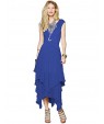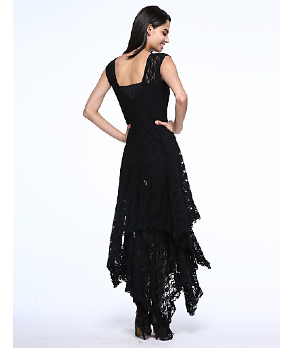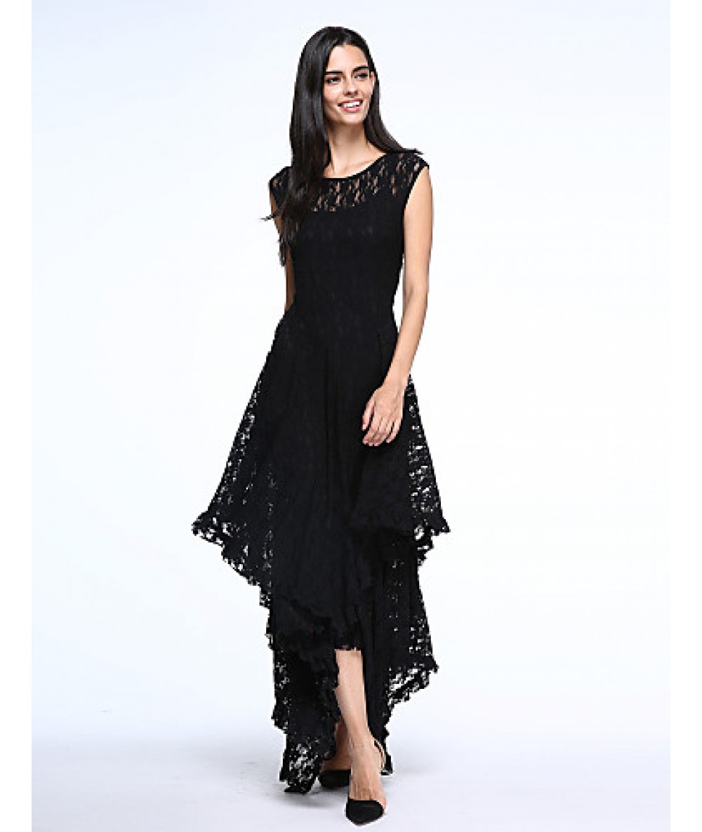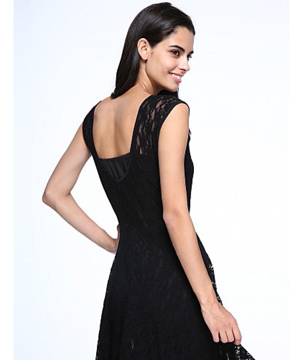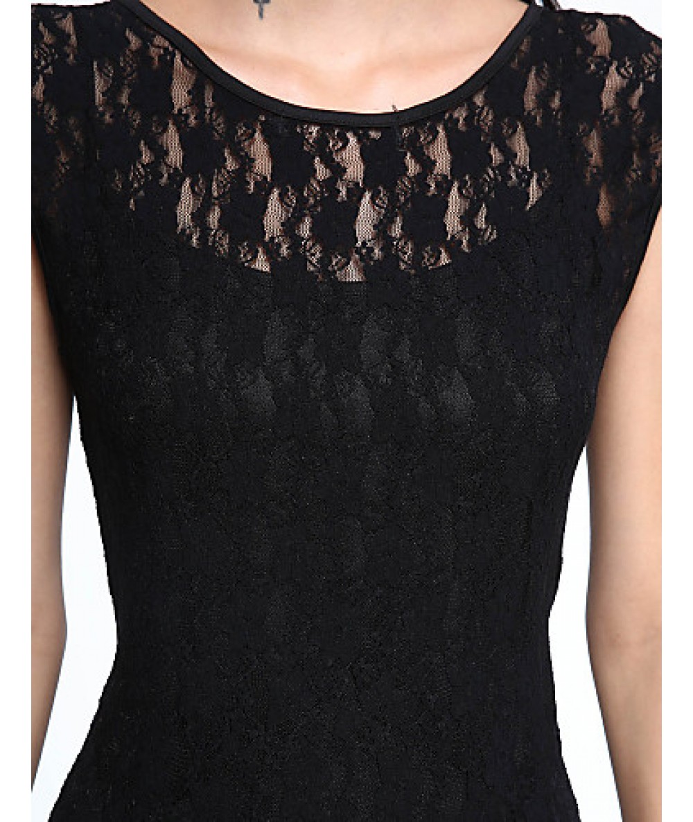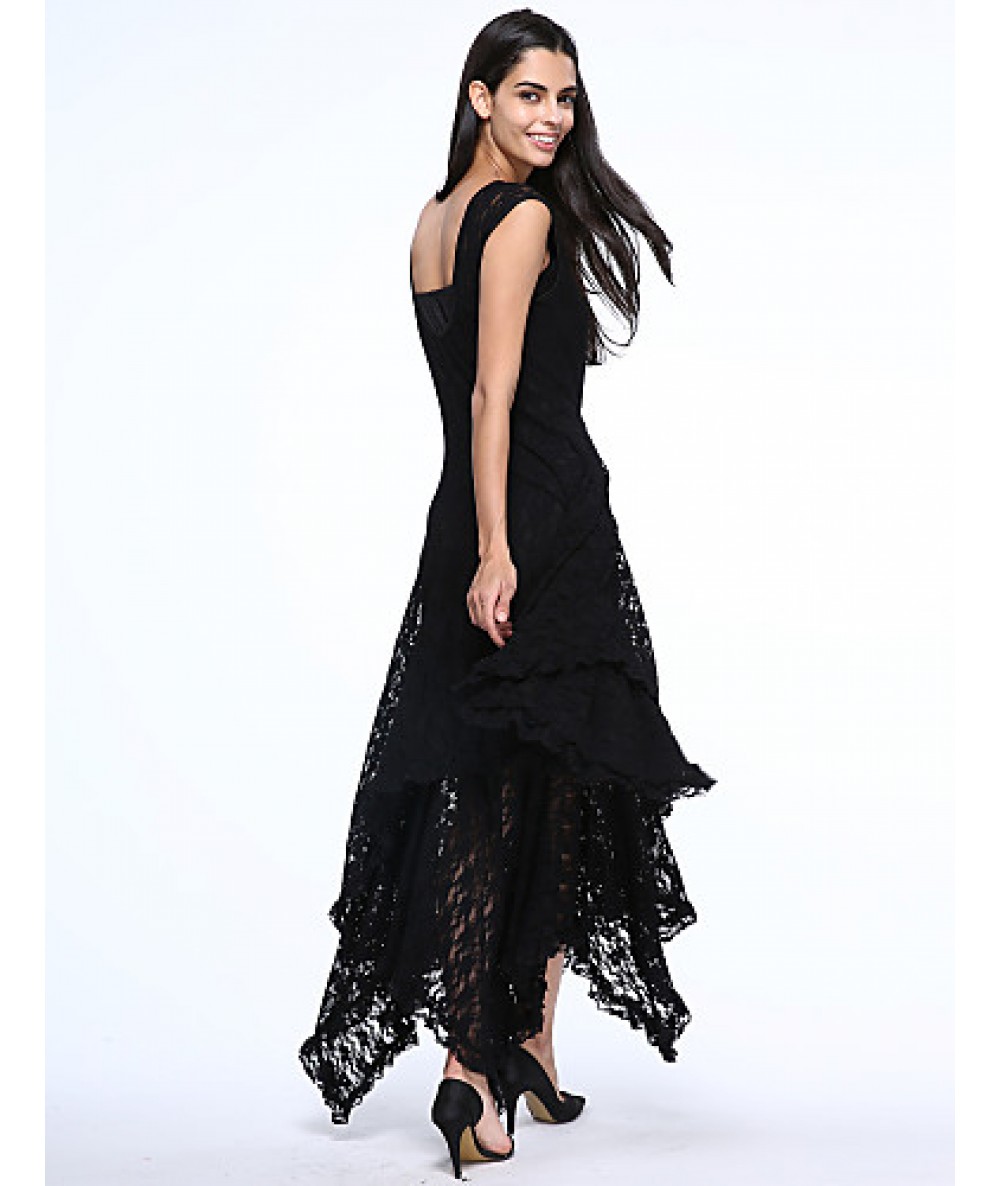Women's Beach Lace / Skater Dress,Solid Round Neck Maxi Sleeveless Blue / Black Acrylic Spring