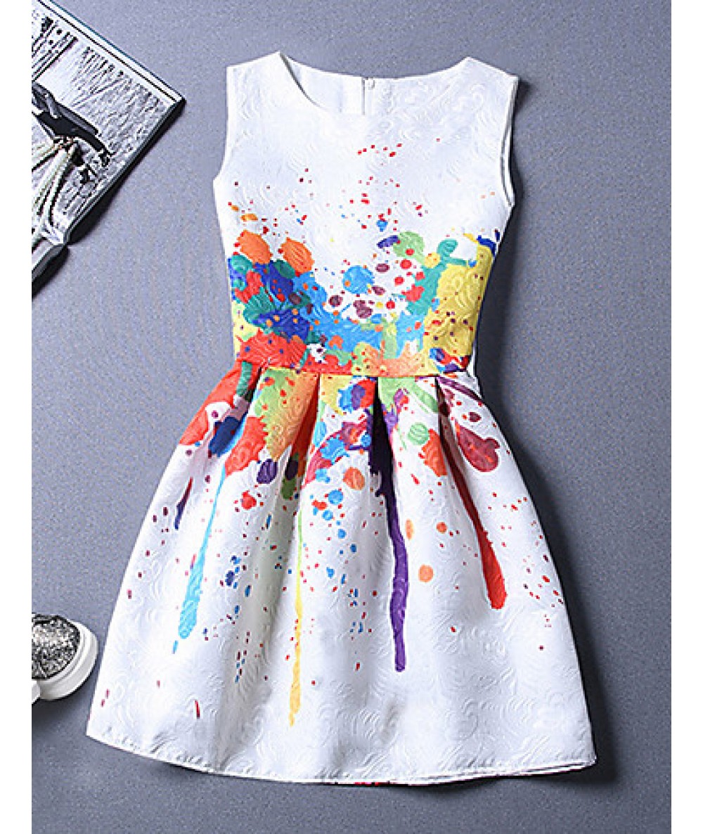 - Product Code: Women's Vintage Print Sheath Dress,Round Neck Above Knee Polyest