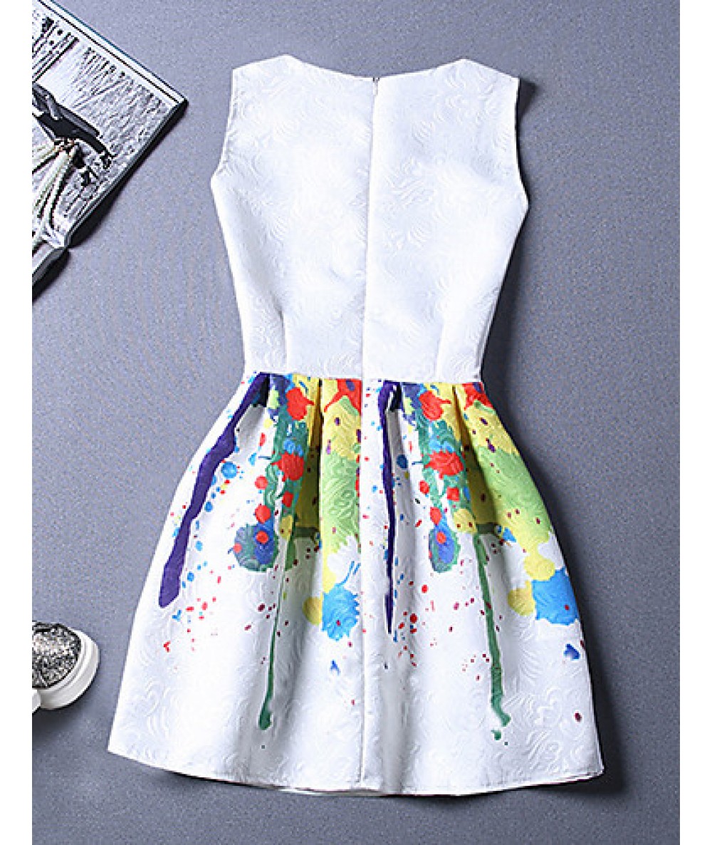 Women's Vintage Print Sheath Dress,Round Neck Above Knee Polyester
