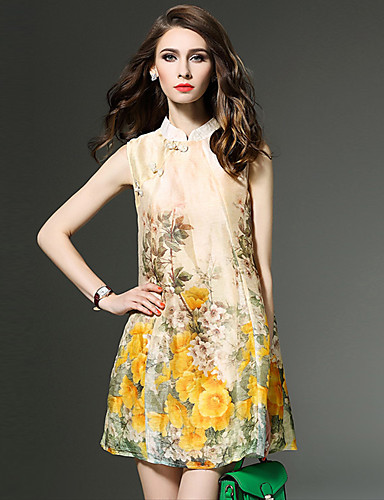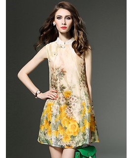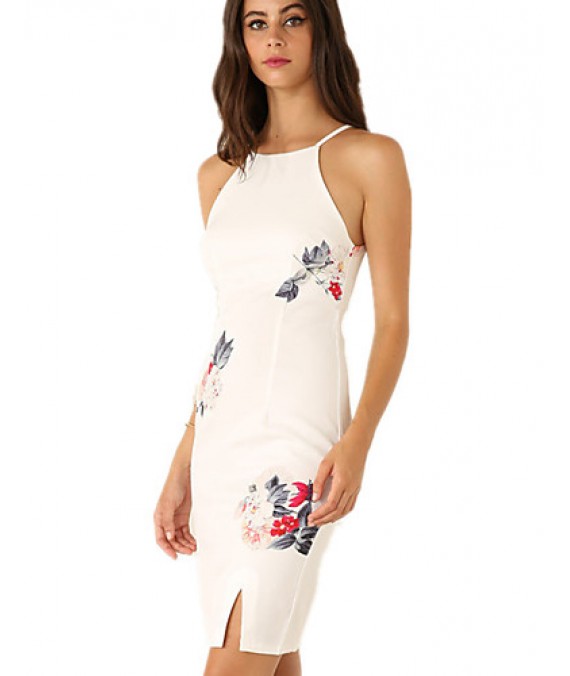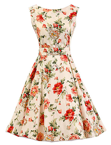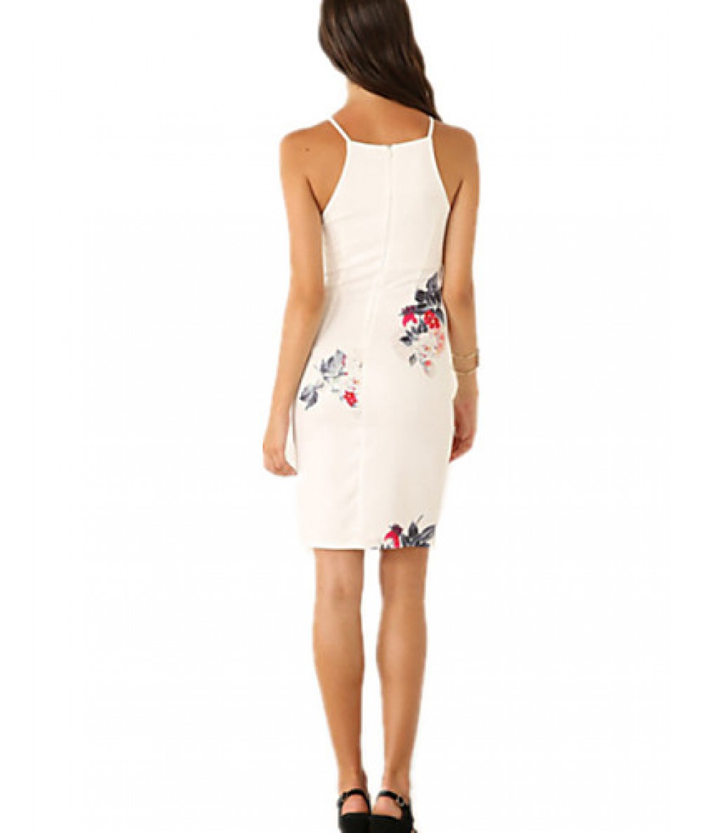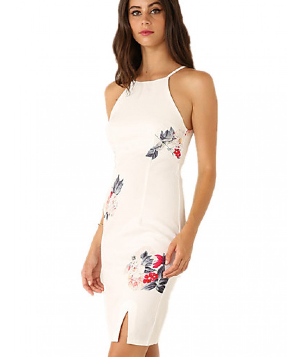 Women's Vintage Sexy Bodycon Print Plus Sizes MicroElastic Sleeveless Knee-length Dress (Cotton/Linen)