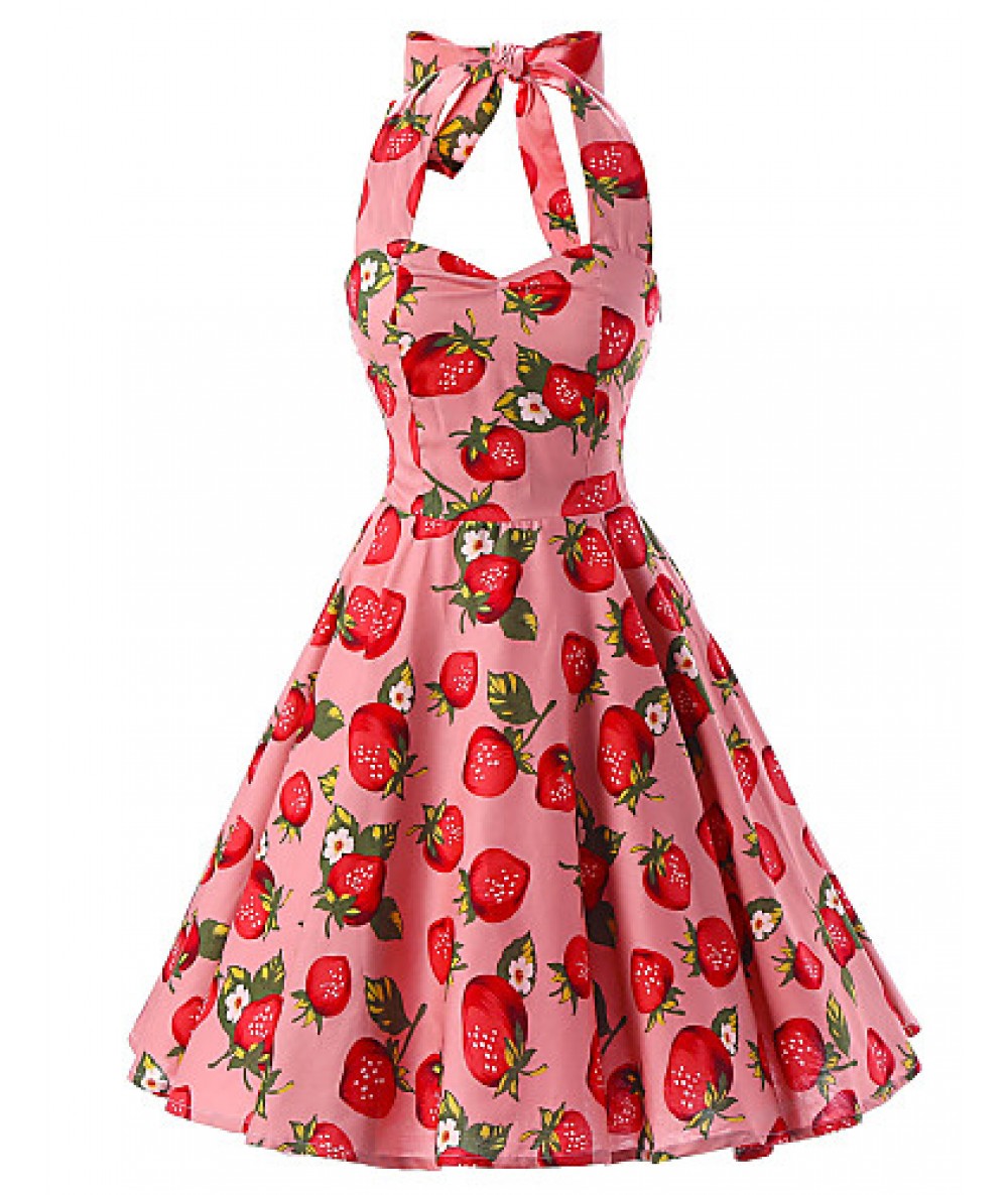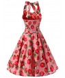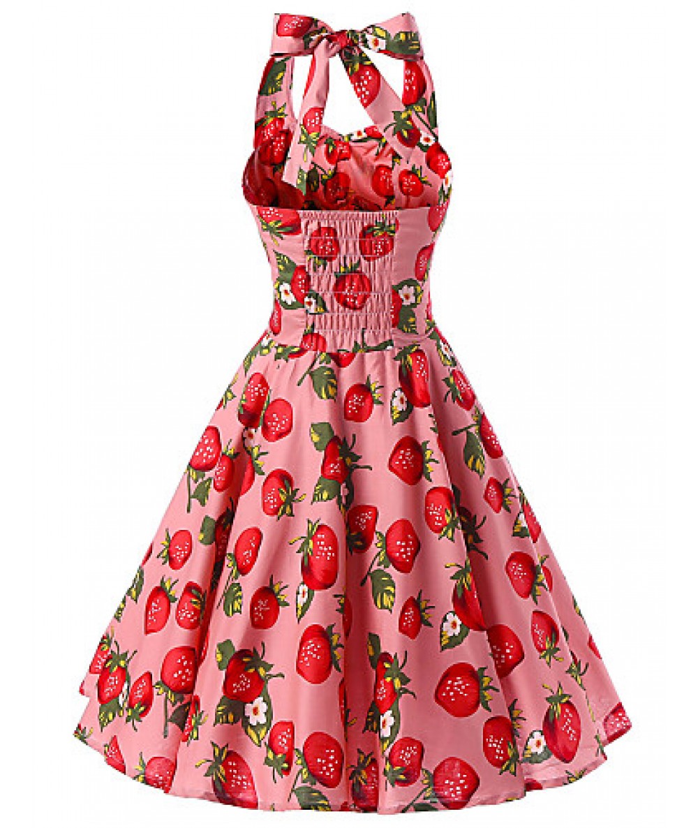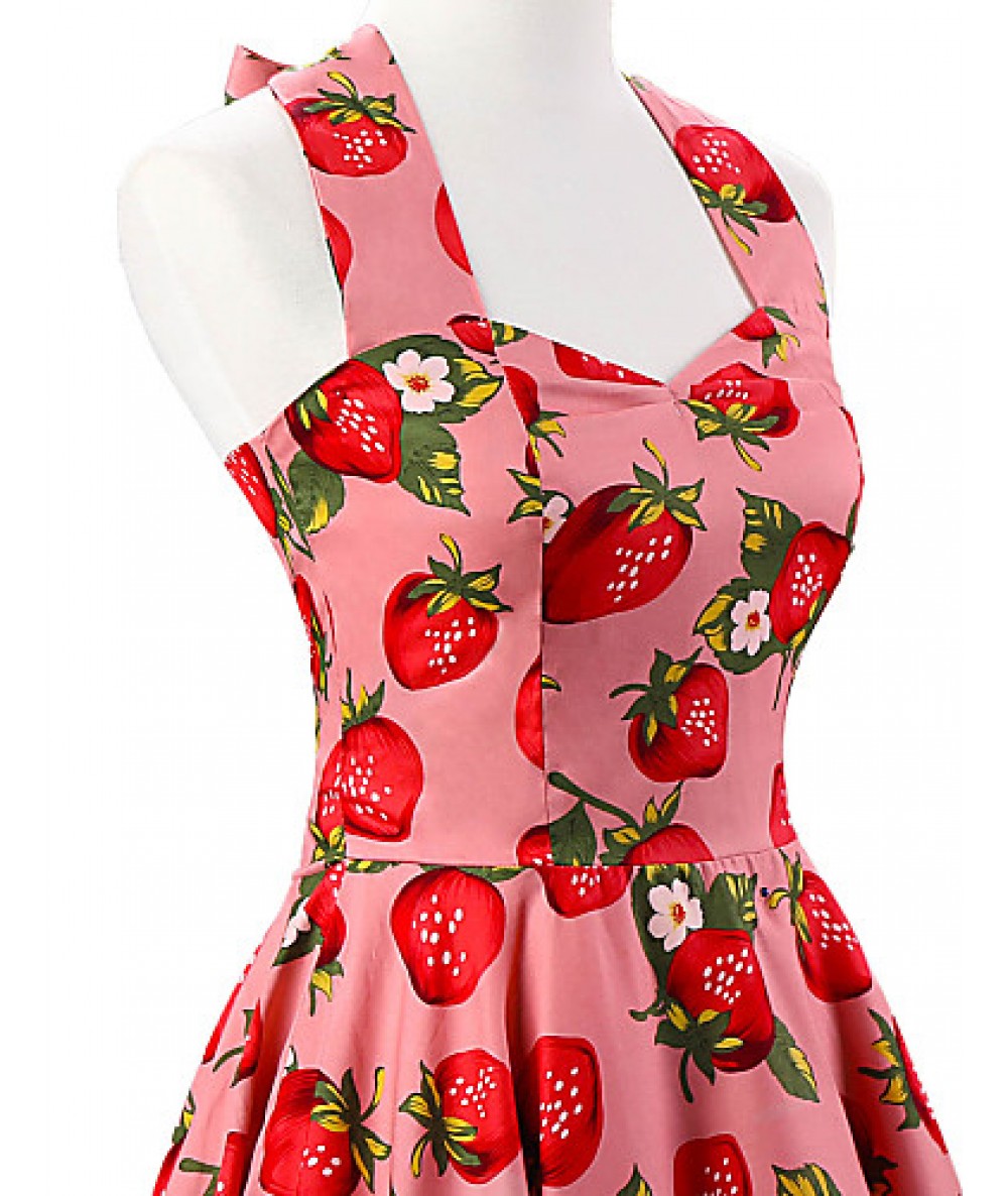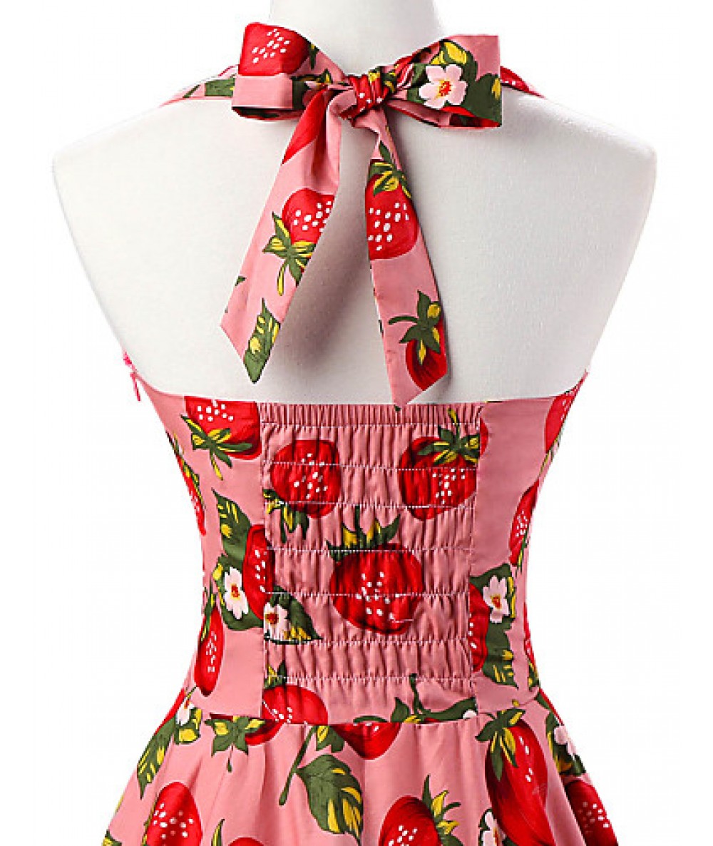 • Product Code: Women's Pink Strawberry Pattern Floral Dress , Vintage Halter 50