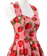 Women's Pink Strawberry Pattern Floral Dress , Vintage Halter 50s Rockabilly Swing Dress