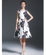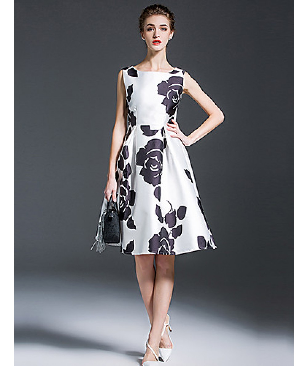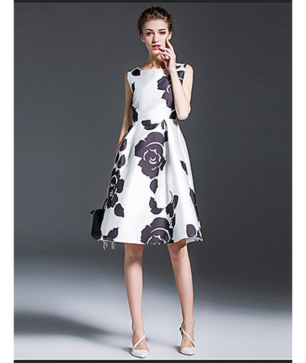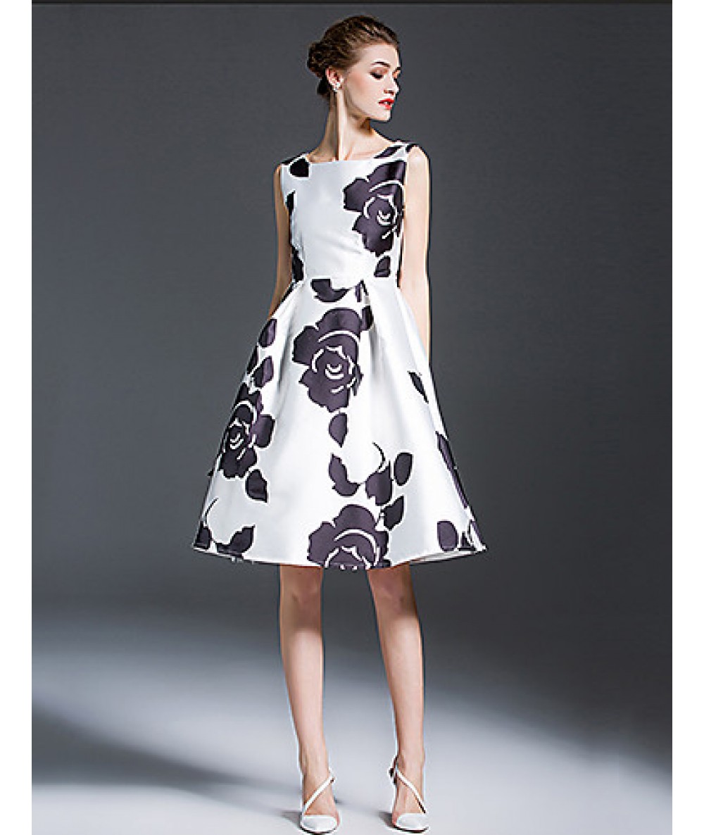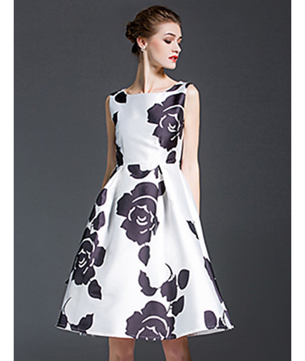 Women's Vintage Floral A Line Dress,Round Neck Knee-length Polyester