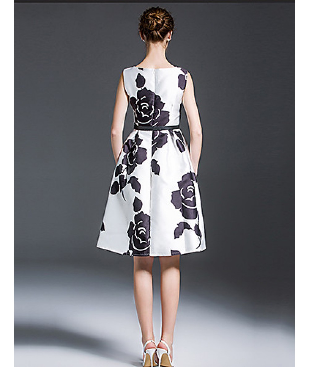 • Product Code: Women's Vintage Floral A Line Dress,Round Neck Knee-length Polye