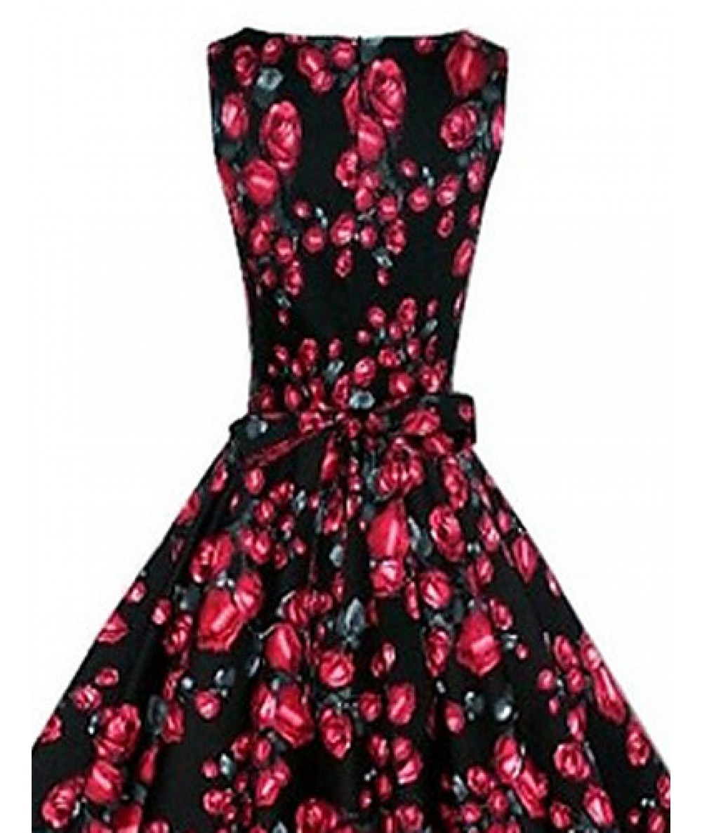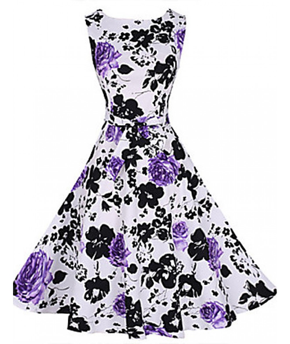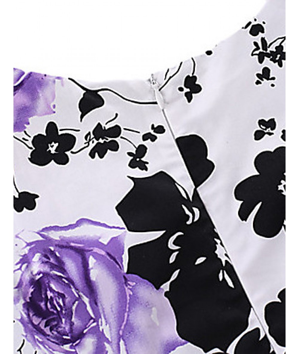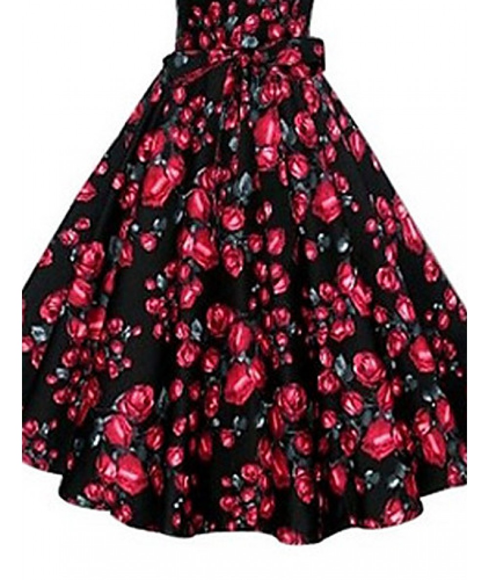 Women's Vintage/Party/Plus Sizes Flower Print 1950's Prom SwingDress (Polyester/Cotton Blends)