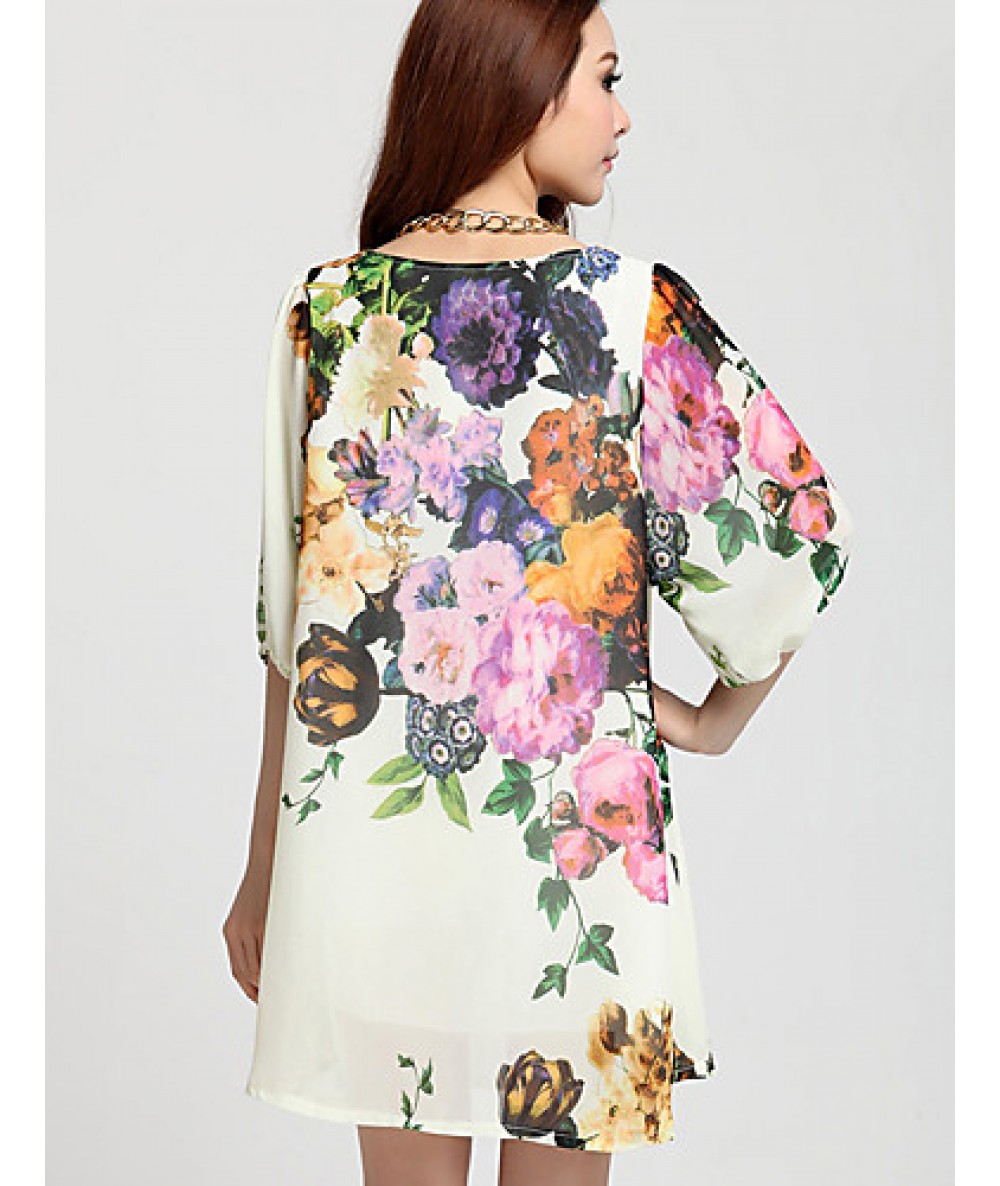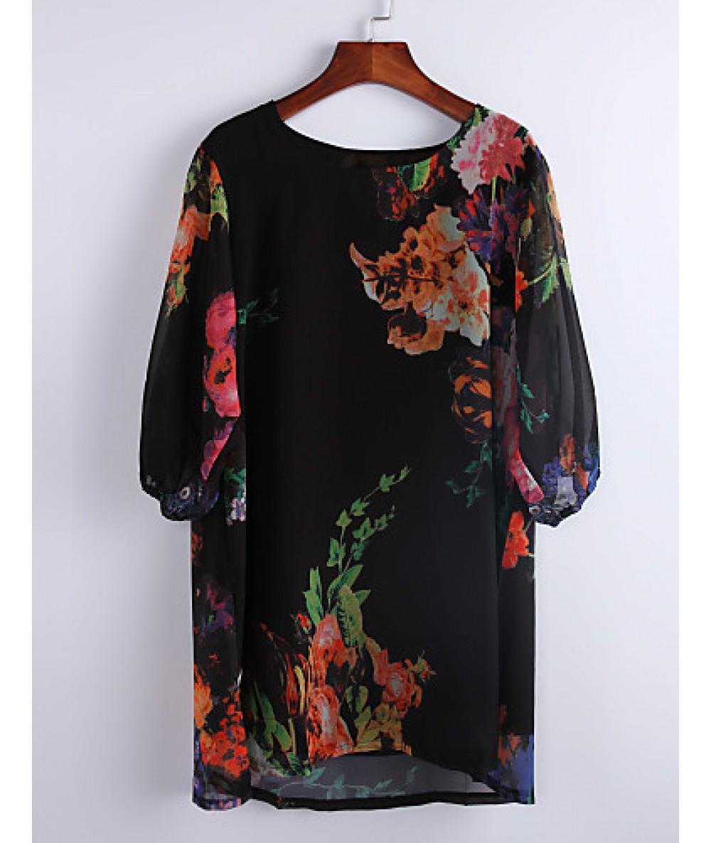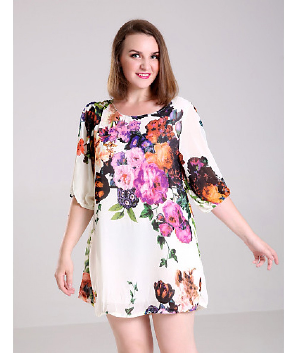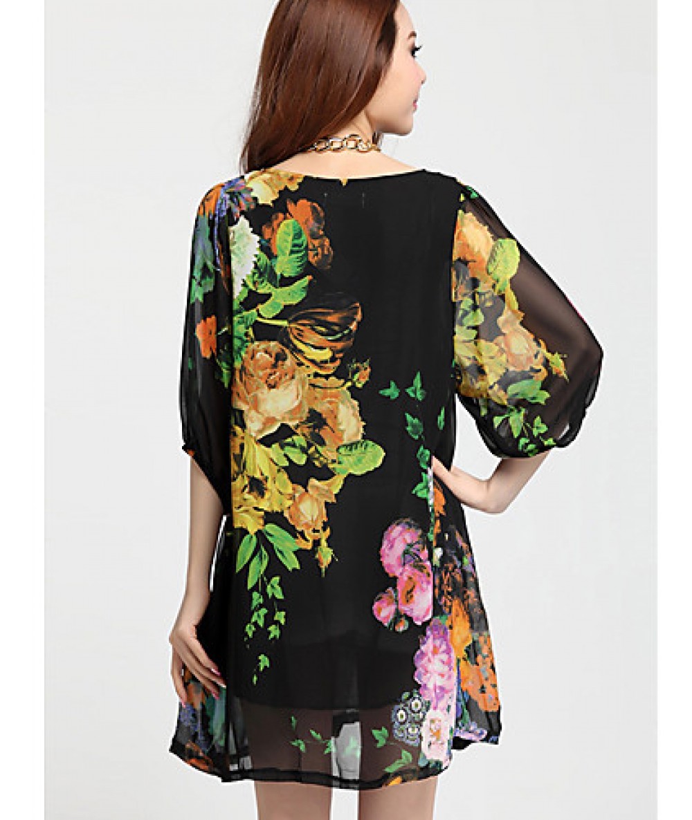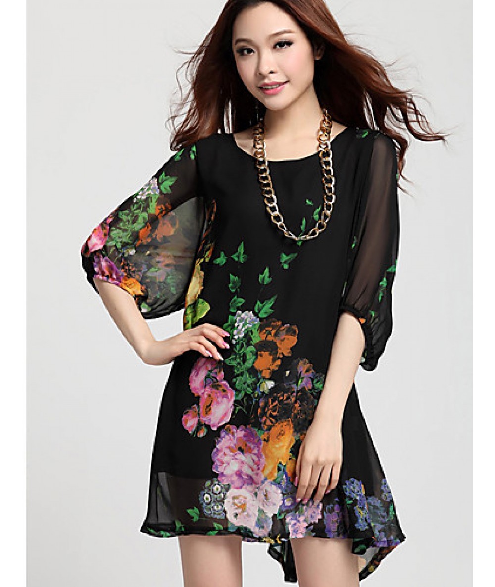 Women's Casual Plus Sizes Micro Elastic Length Sleeve Above Knee Dress (Chiffon)