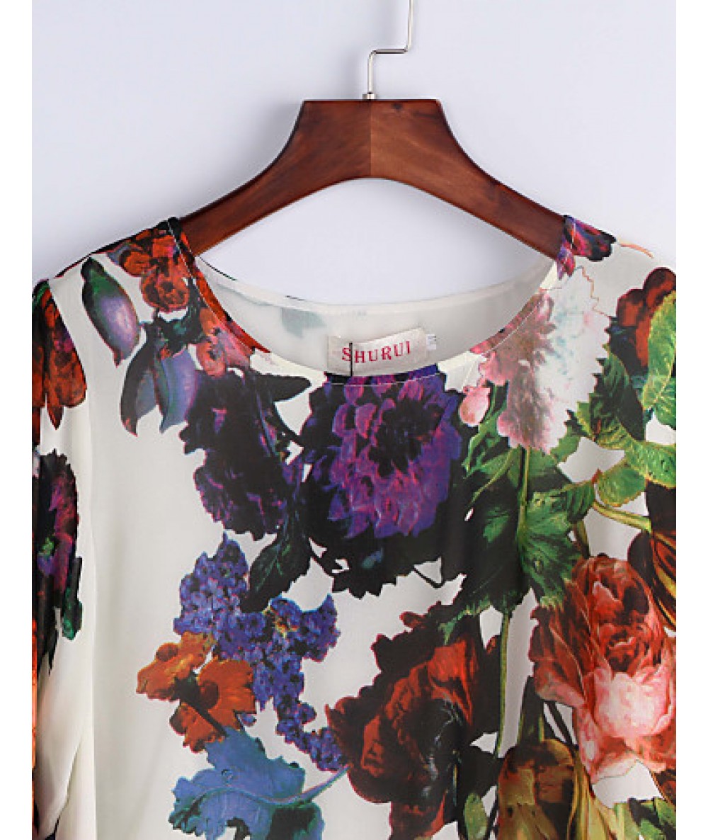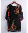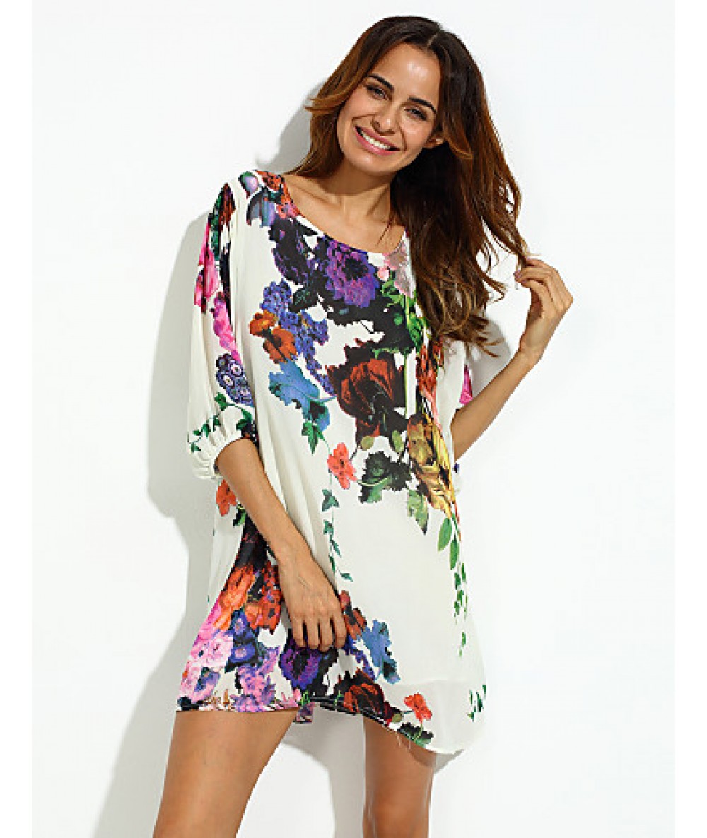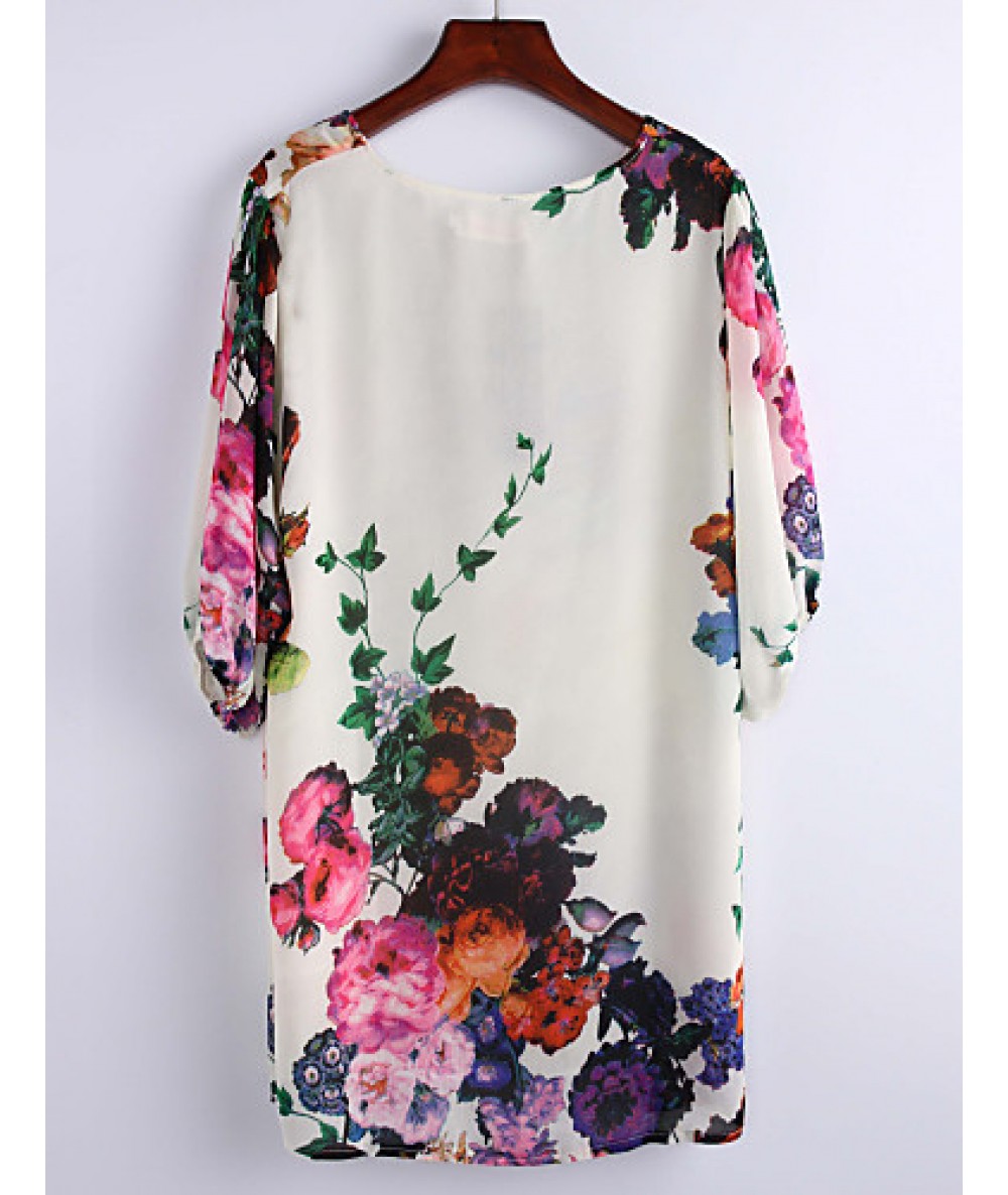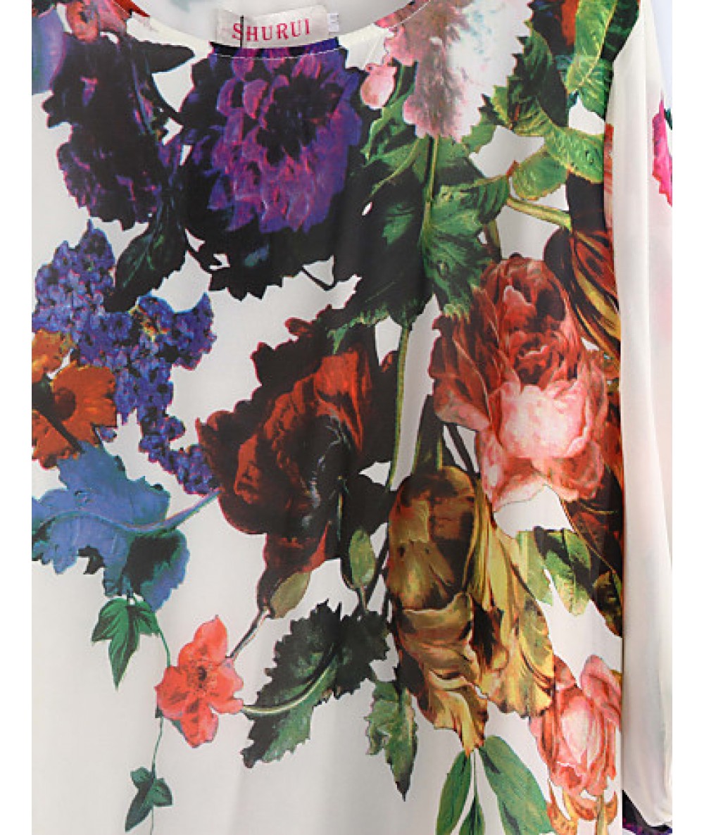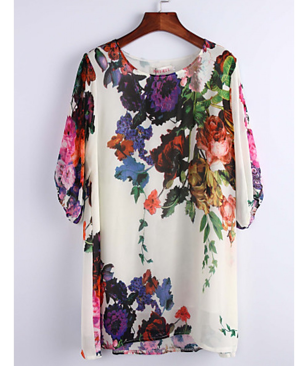 Women's Casual Plus Sizes Micro Elastic Length Sleeve Above Knee Dress (Chiffon)
