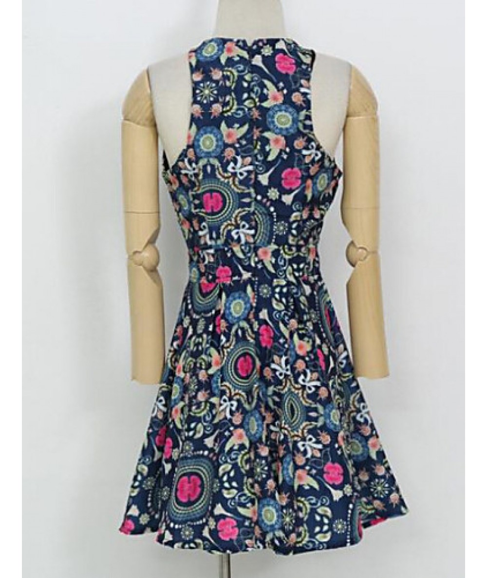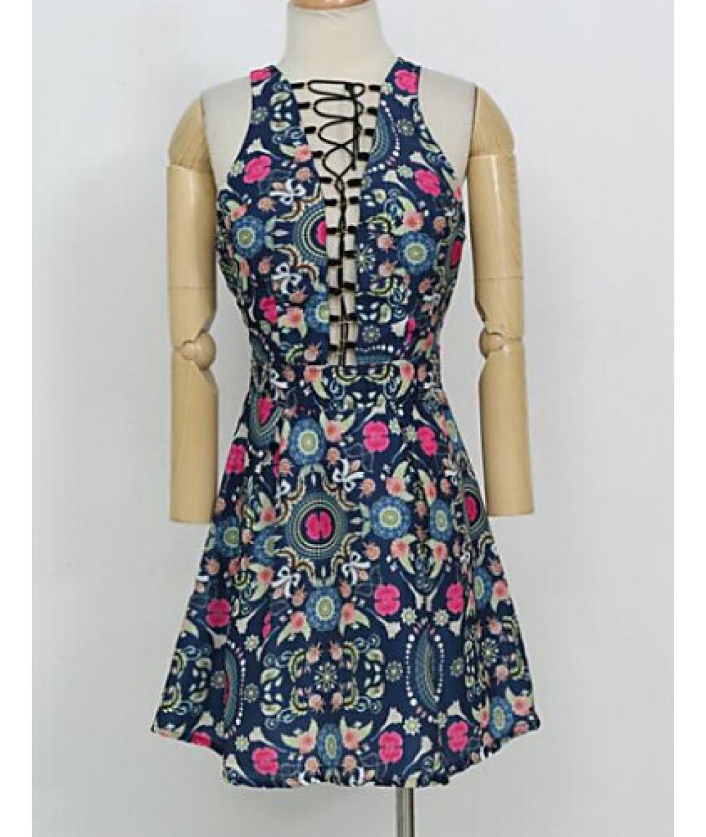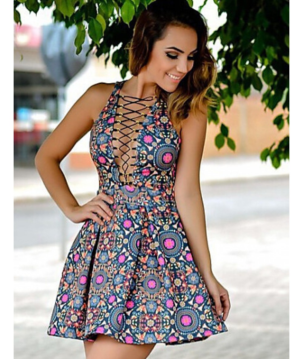 - Product Code: Women's Club Skater Dress,Print V Neck Above Knee Sleeveless Blu