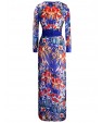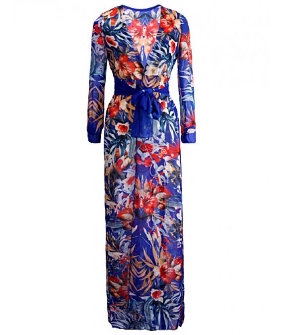 Women's Sexy Beach Casual Night Club Party Print Maxi Dress with Belt