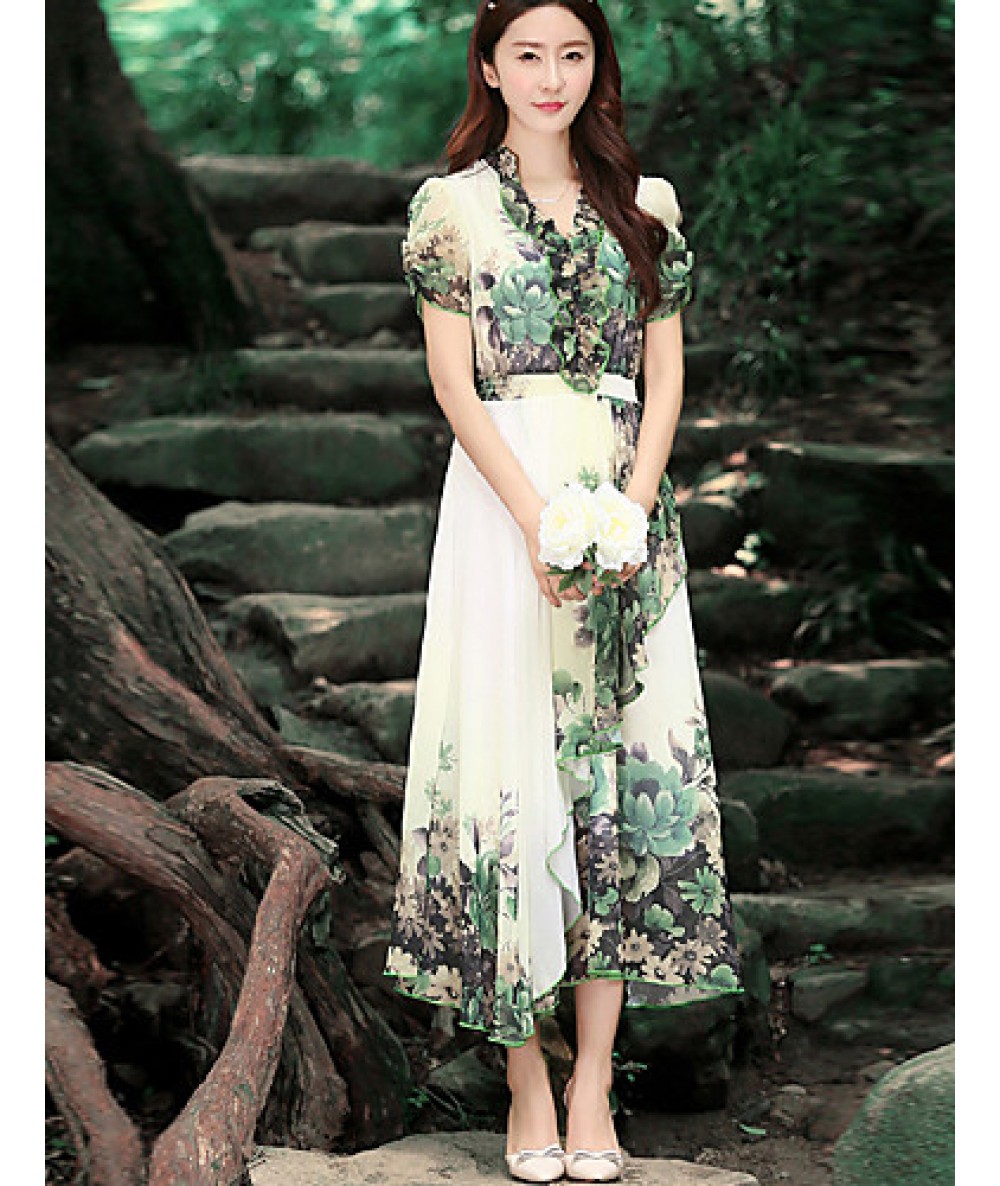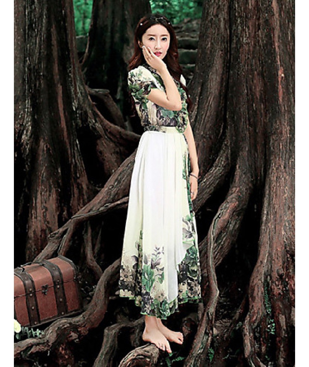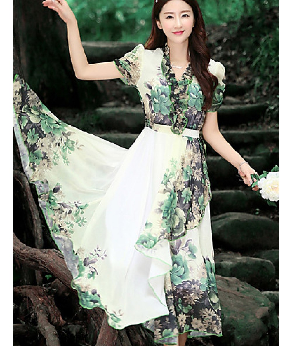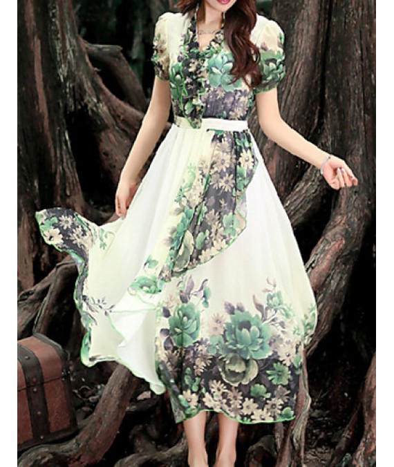 Women's Vintage Party Micro Elastic Short Sleeve Midi Dress (Chiffon)
