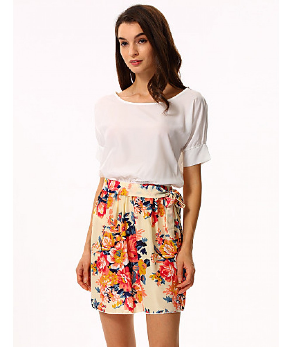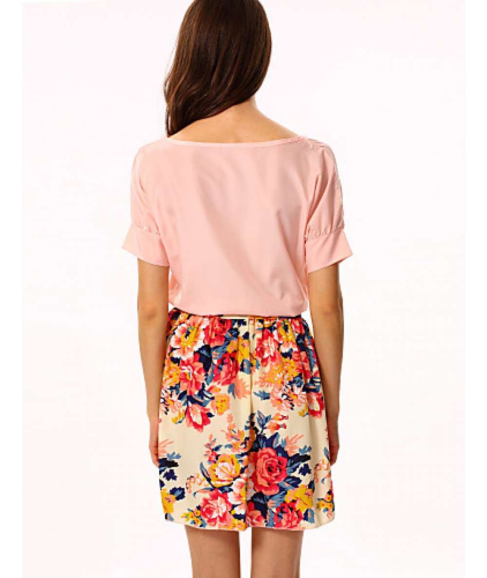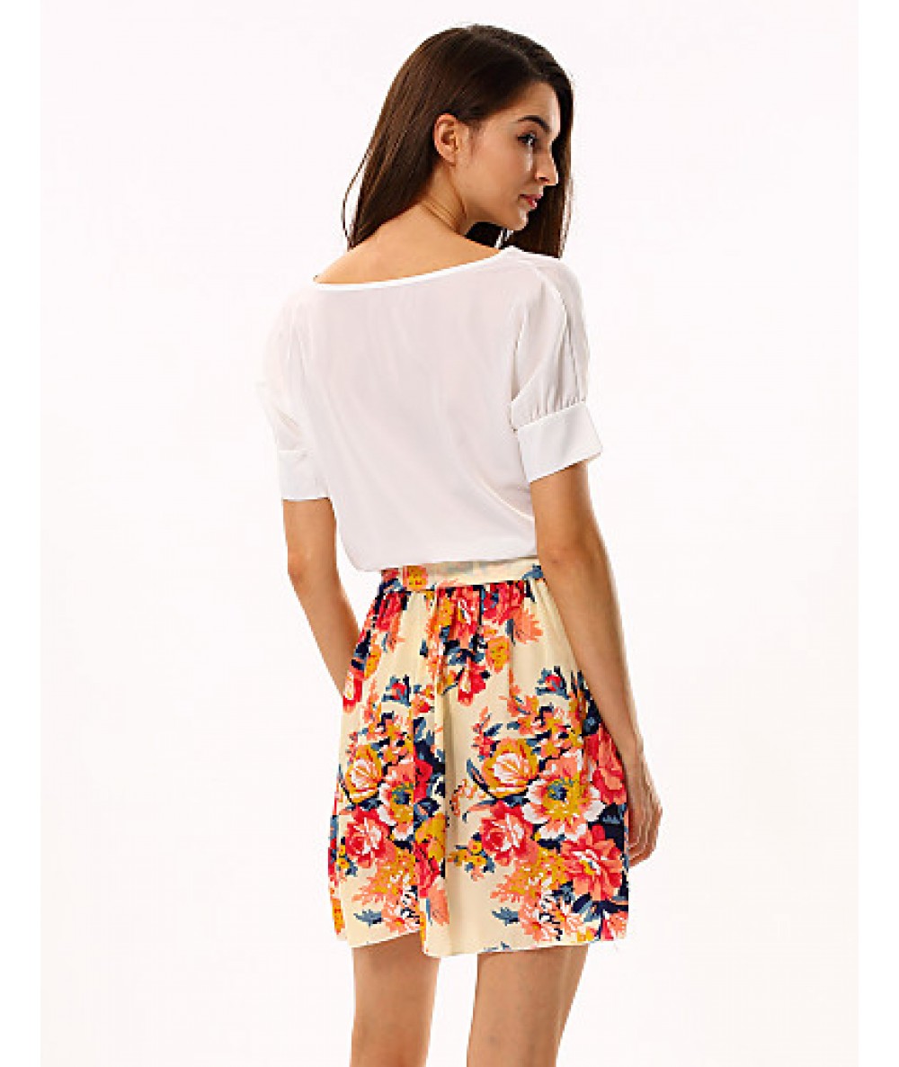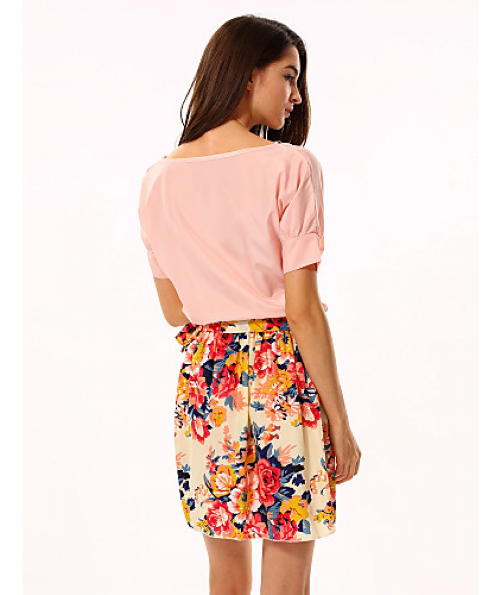• Product Code: Women's White/Pink Round Flower Print Chiffon Short Sleeve Dress