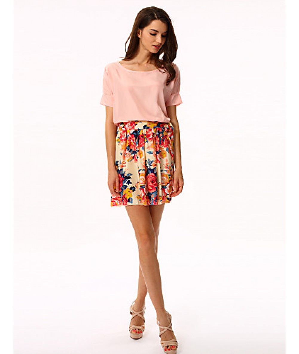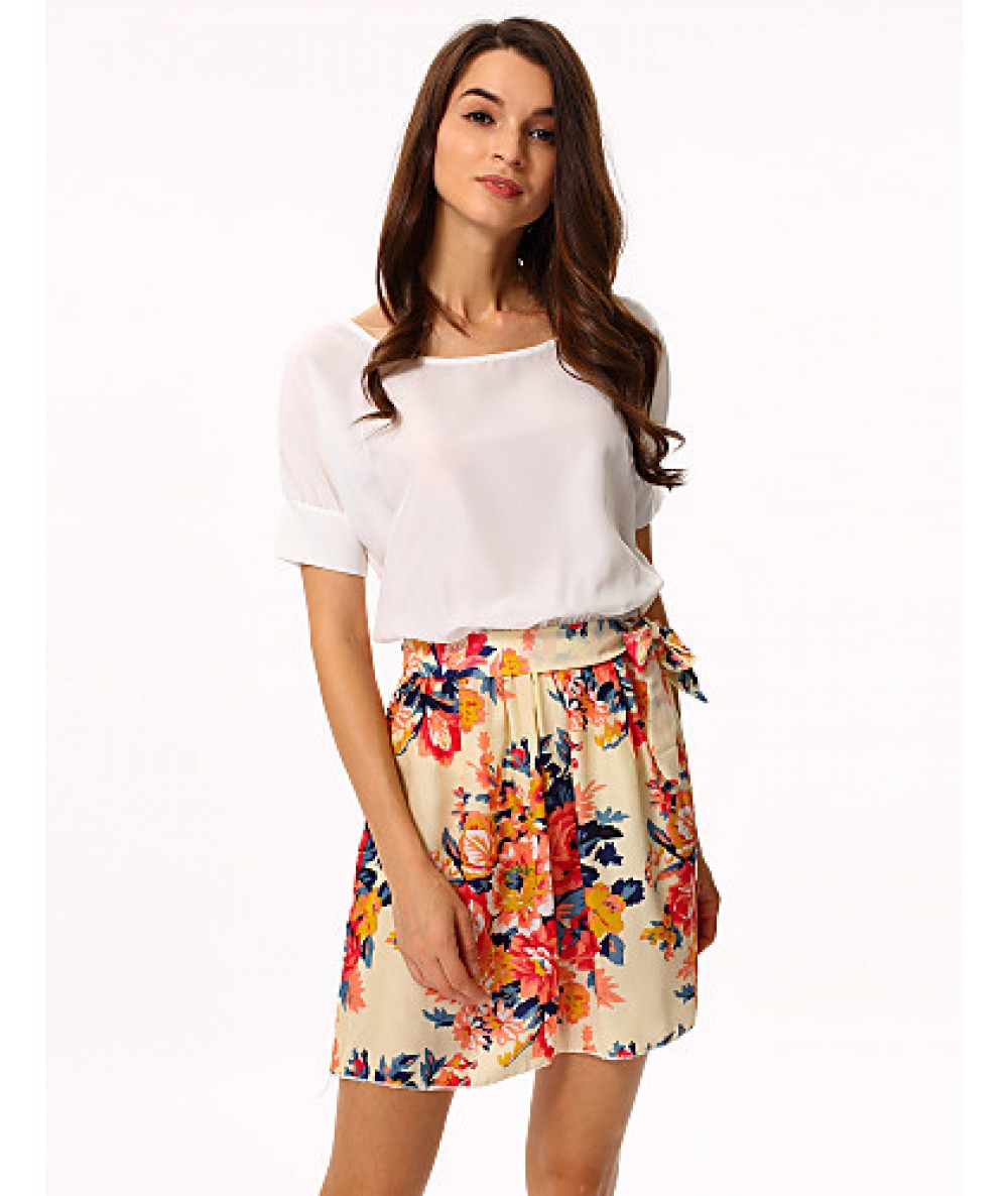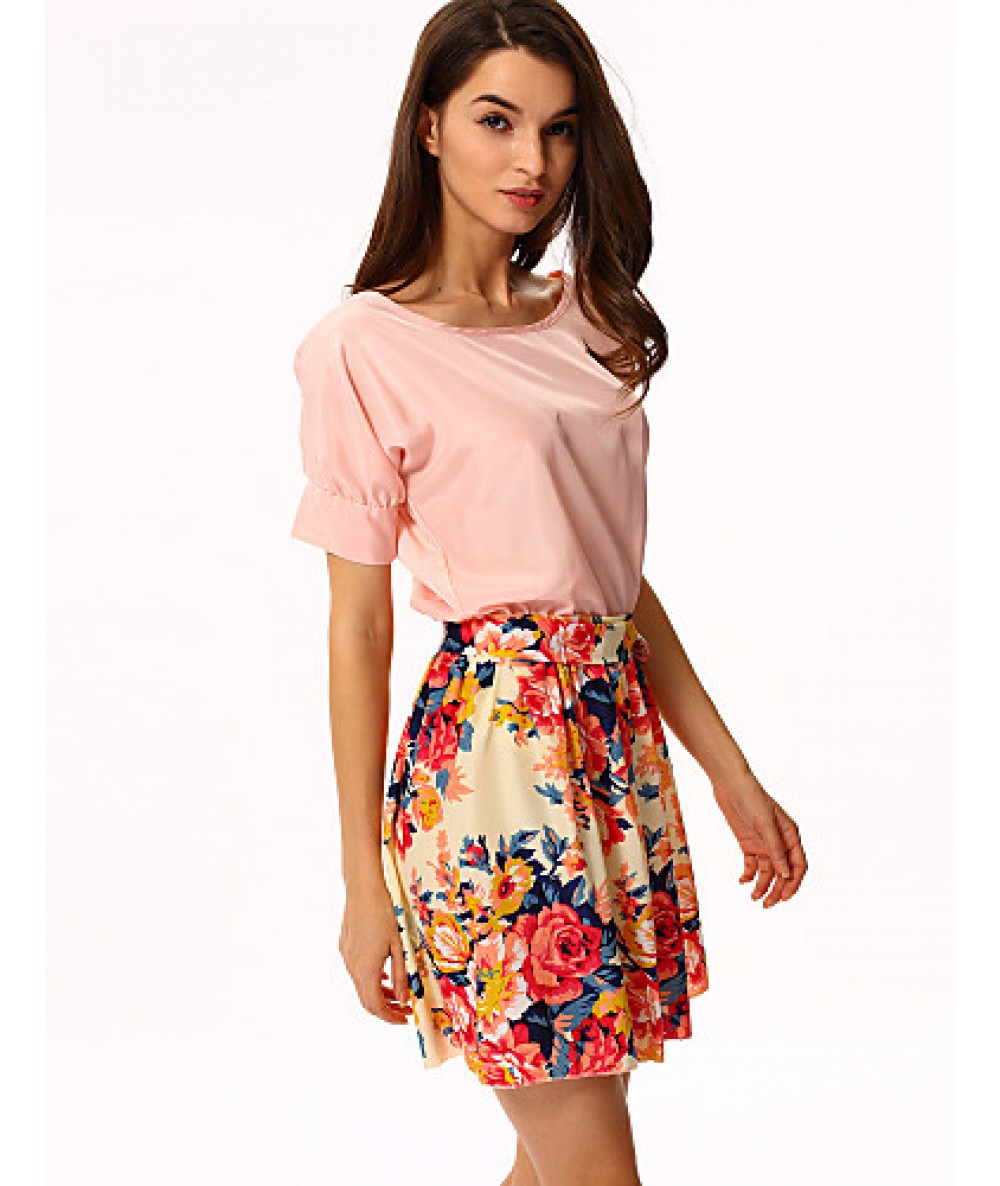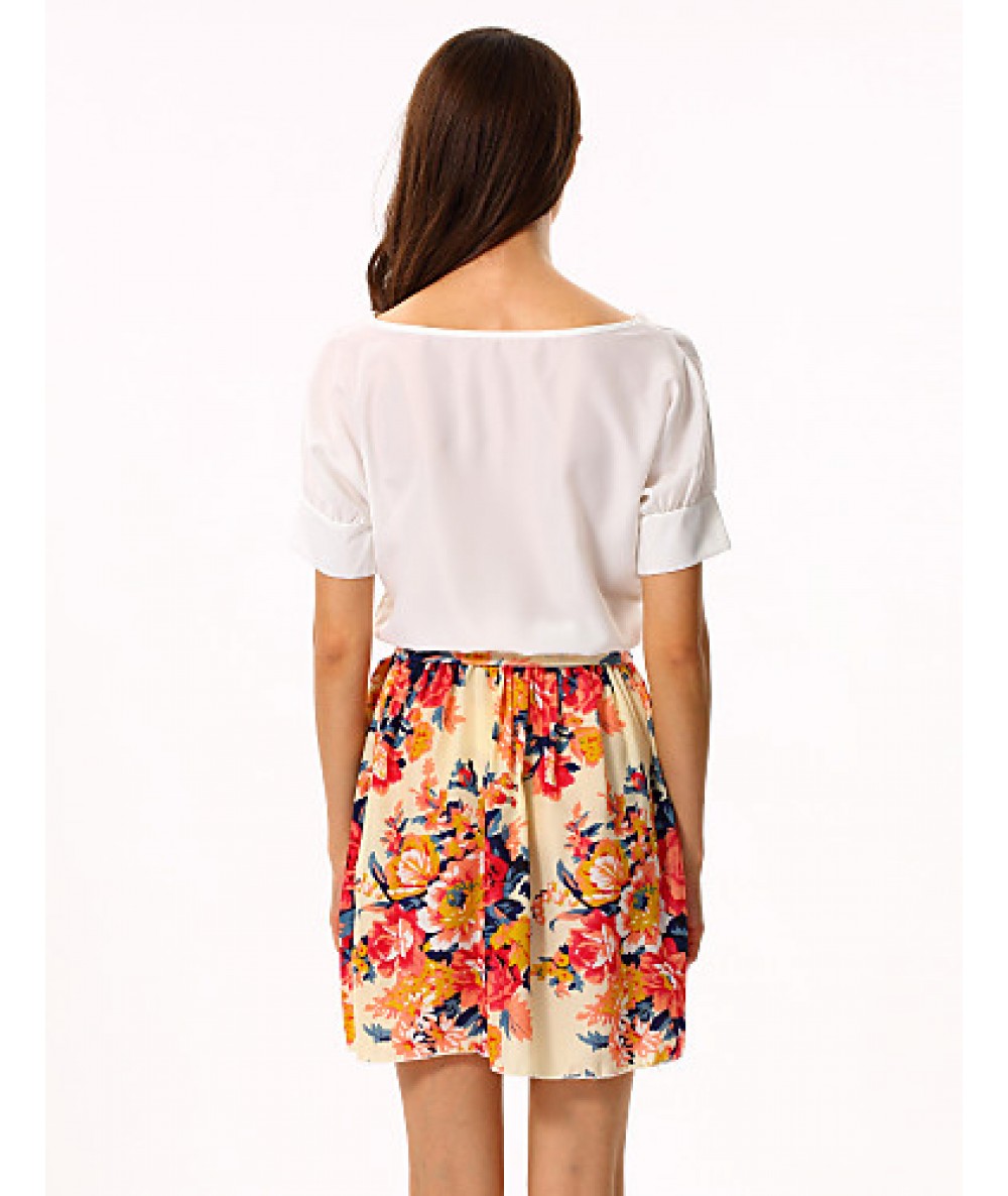 • Product Code: Women's White/Pink Round Flower Print Chiffon Short Sleeve Dress