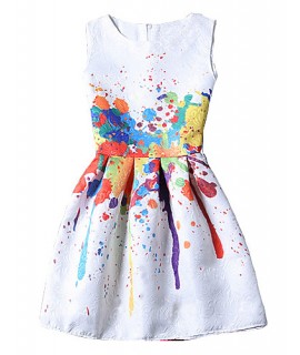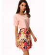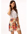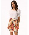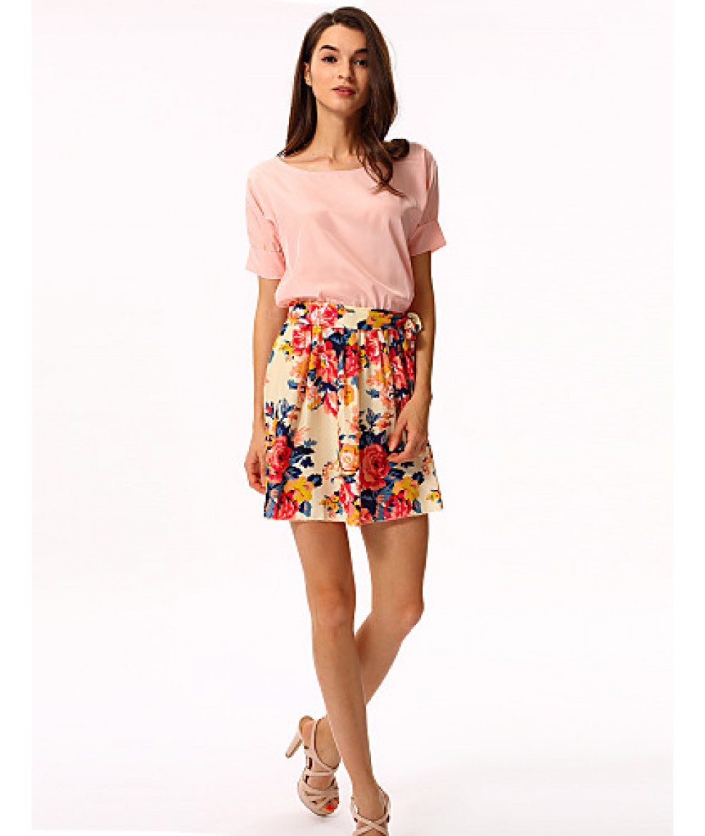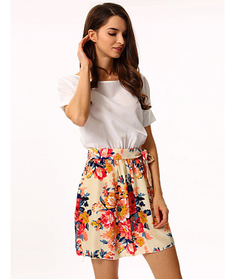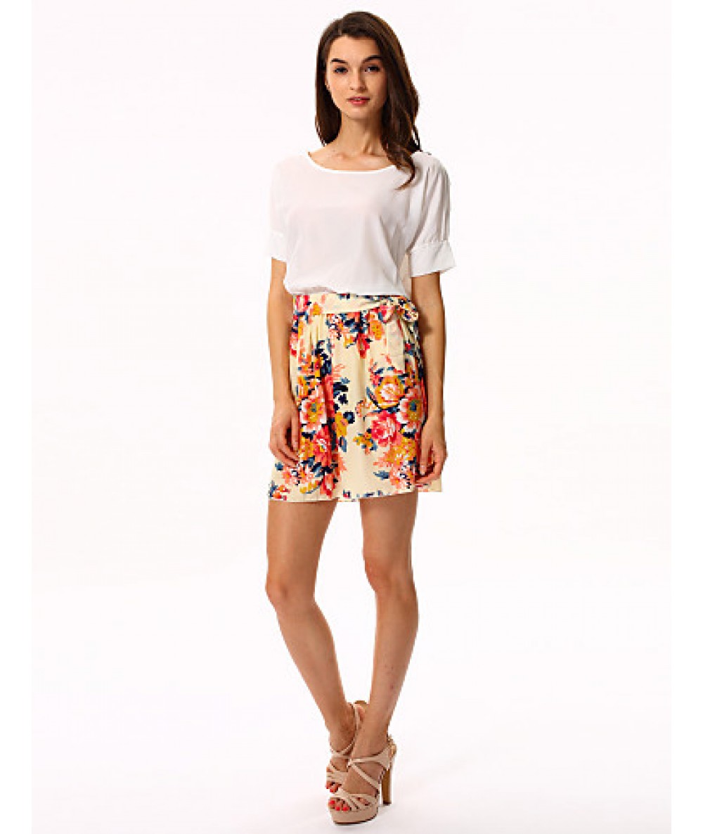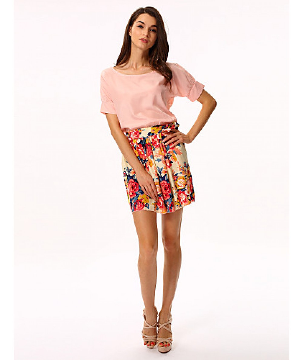 • Product Code: Women's White/Pink Round Flower Print Chiffon Short Sleeve Dress