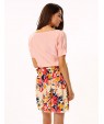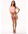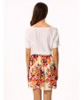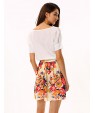 Women's White/Pink Round Flower Print Chiffon Short Sleeve Dress