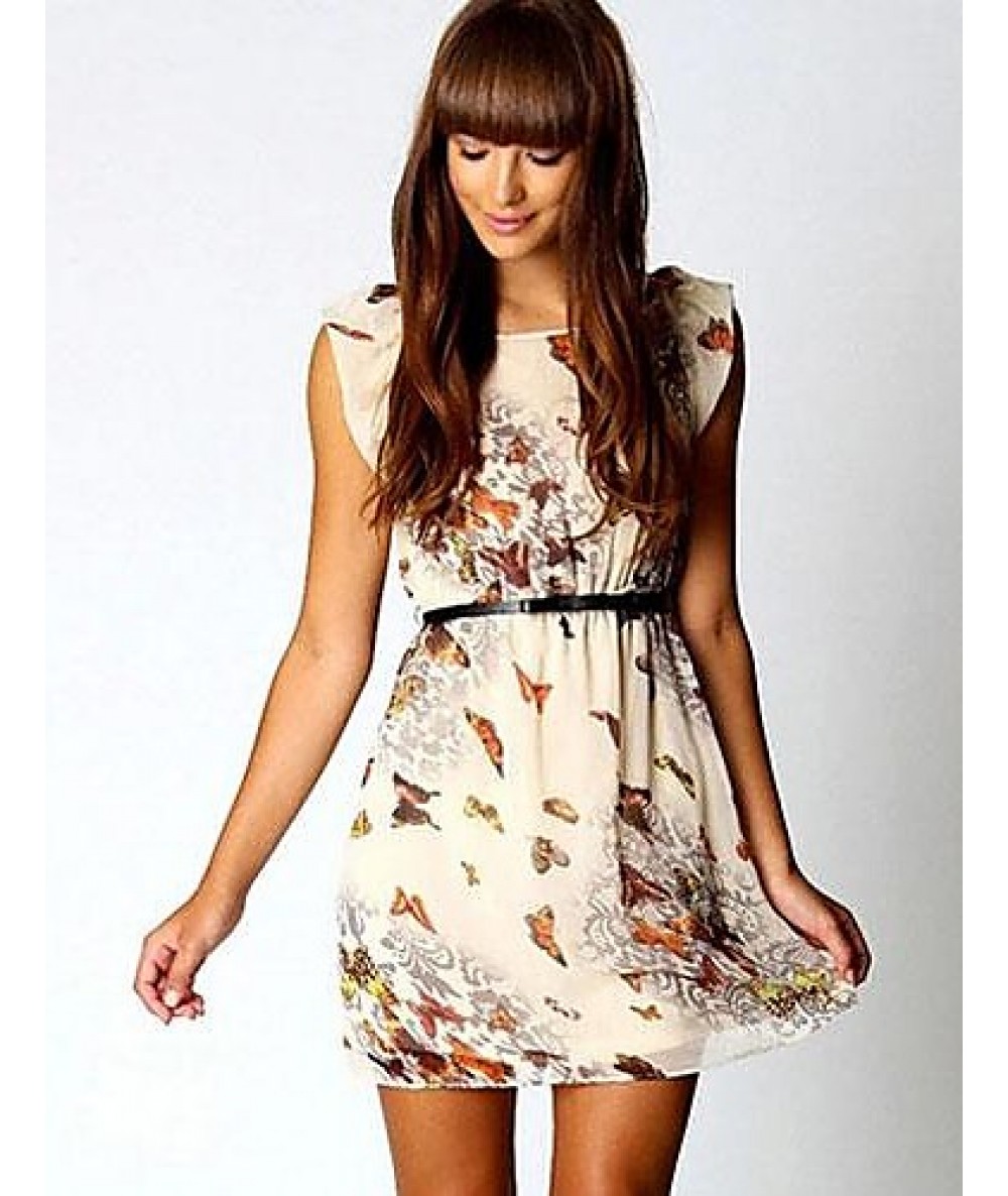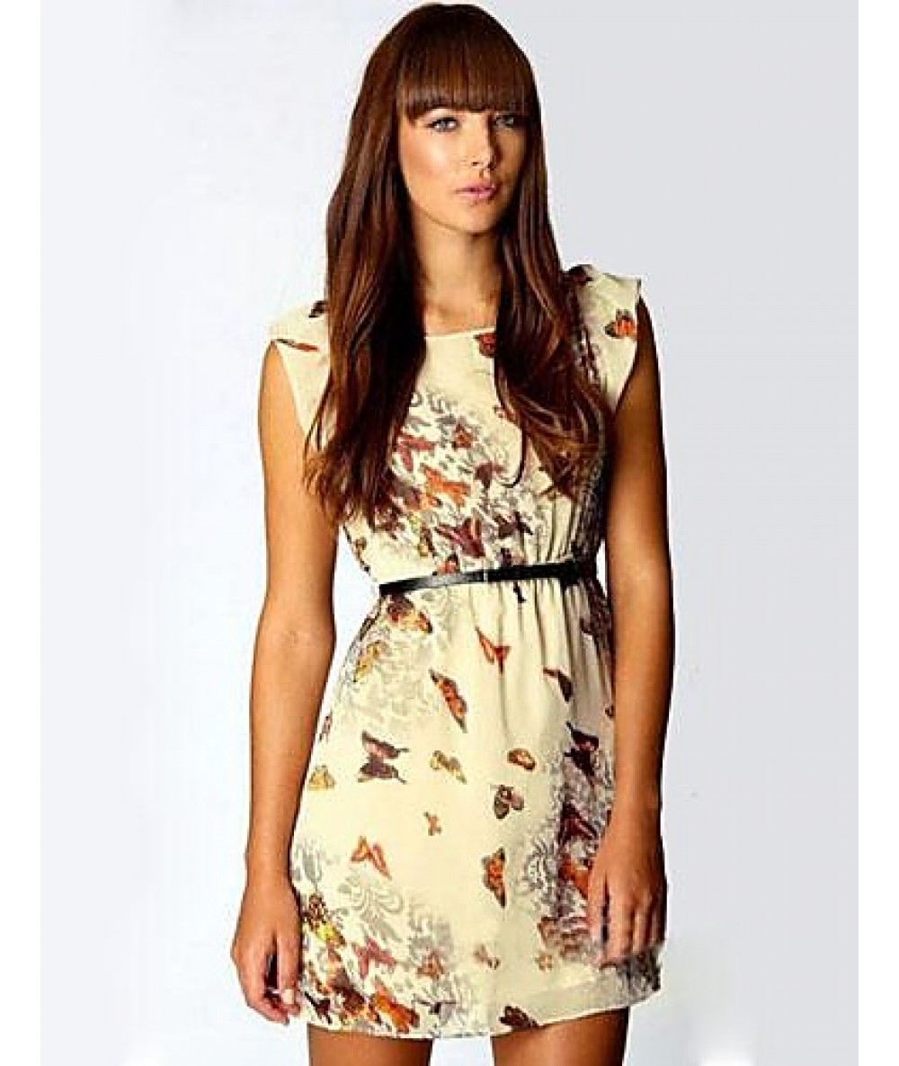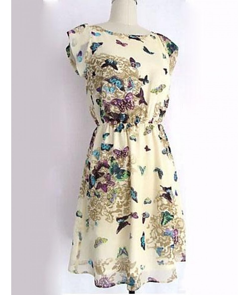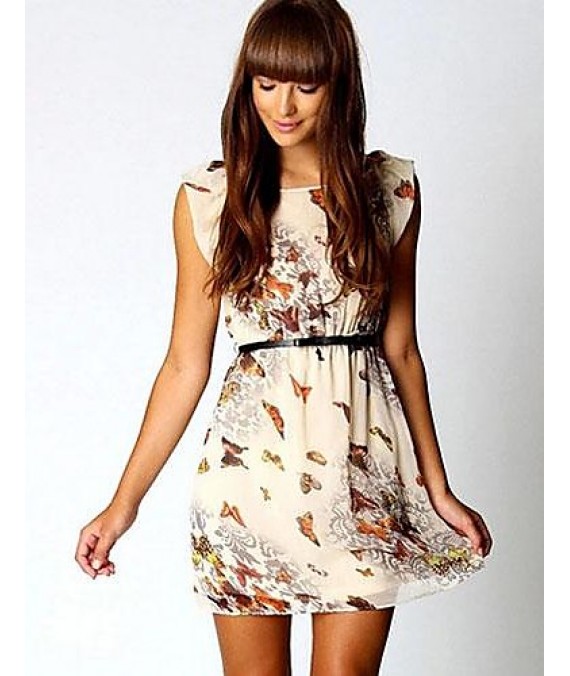 - Product Code: Women's Butterfly Print Chiffon Mini Dress